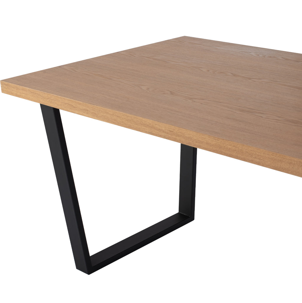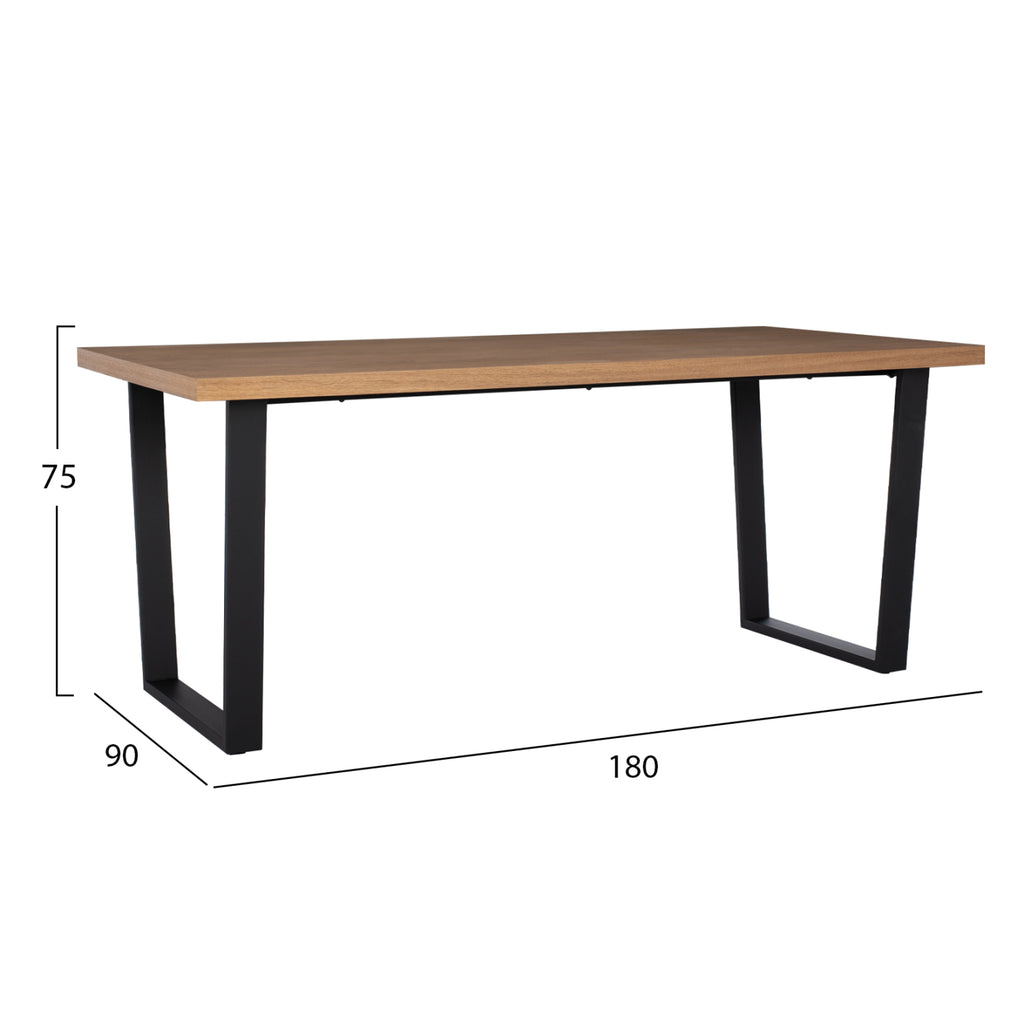 ΜΜ9012 е голяма правоъгълна маса за трапезария, с MDF повърхност с дъбов фурнир в цвят МЕДЕН ДЪБ и стил рустик. Тази повърхност лежи върху черна метална рамка с трапецовидни крака. Това е красива маса в големи размери и с красив двуцветен цвят, в резултат на което може да се впише естетически в почти всяко подобно пространство. РАЗМЕРИ: 180x90x75H см. Дебелина на плота: 4см. МАТЕРИАЛИ НА ИЗРАБОТКА: Плотът е изработен от MDF с дъбов фурнир. МДФ (влакна със средна плътност) е модерен потребителски материал, който често се избира предимно за кухненската част. Основните му характеристики са, че абсорбира минимална влага, важен фактор за пространство като кухнята, има хомогенност в масата си, задоволителни механични свойства, отлична гладкост и много възможности за обработка. Краката и рамката са метални за по-голяма издръжливост с пластмасови капачки в долната част за защита на пода. ПОДДРЪЖКА: Почистването на прах на редовни интервали и забърсването с влажна кърпа е достатъчно за поддръжка на масата. За повърхността, разбира се, можете да използвате и леки почистващи препарати на пазара. ПРЕДИМСТВА: •Здрава и безопасна конструкция •Модерен минималистичен дизайн •Качествени строителни материали, които спомагат за лесната поддръжка и издръжливостта на масата •Идеална както за домашна, така и за професионална употреба. Продуктът се доставя разглобен с инструкции за монтаж