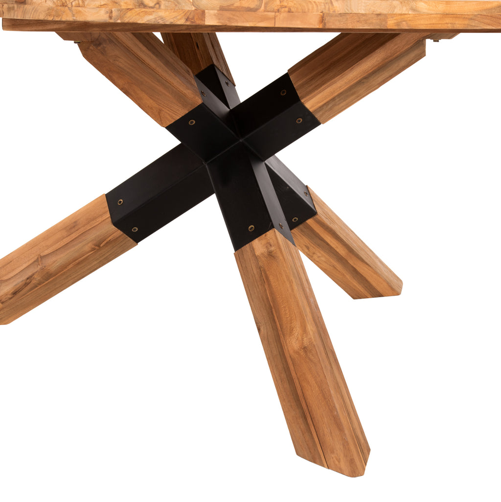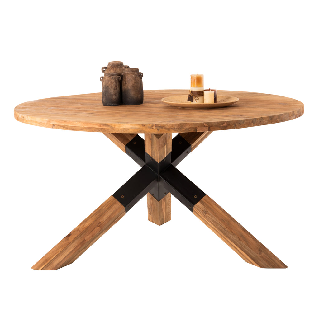 КГ9559---Кръгла маса, изработена изцяло от масивни ТИКОВИ дървесини в естествения им цвят. Почива върху кръстосани тъмносиви метални крака, комбинирани с дърво. Маса, която ще зарадва всеки със своите задоволителни размери и издръжливост. Всичко, което трябва да направите, е да намерите столовете, които ще паснат на тази прекрасна маса! Кръглите маси са особено практични и красиви, защото нямат плотове и "водачи", нито ъгли или крака, които често създават неудобни ситуации. ТЕХНИЧЕСКИ ХАРАКТЕРИСТИКИ: Размери: Φ150x78H см. Разстояние между краката: 129 см. Дебелина на повърхността: 4см. Дебелина на крака: 10х10 см. МАТЕРИАЛ НА ИЗРАБОТКА: Масата е изработена от масивно рециклирано ТИКОВО дърво. Масивната дървесина е вид дървесина, чиста и неизбелена, и е най-скъпият избор в дървесния тип и се откроява със своята вечна естетика. Ефектът, който предлага на притежателя си е наистина уникален. Тиковото дърво е най-популярният вид твърда дървесина. Той е жълт до тъмно кафяв на цвят, изключително тежък, с висока якост, устойчив на атмосферни влияния, устойчив на стружки и не се разлага. Често водите на дървото му са силни и прави. Използва се за много интериорни конструкции. ** Съществуващите пукнатини или такива, които могат да се образуват с времето се дължат на свиването-разширяването на живия организъм, наречен масивна дървесина, а не са производствен дефект, придавайки оригиналност и уникален дизайн на вашето пространство. Това не са дефект на продукта. ПОДДРЪЖКА: Фактът, че ТИК е част от твърдата дървесина, го прави много лесен за поддръжка. Всичко, от което се нуждае, е почистване от прах и при необходимост почистване с влажна кърпа. ПРЕДИМСТВА: Тези, които са почитатели на рустик стила в обзавеждането и декорацията ще останат възхитени от тази маса. Той е красив, здрав и идеален за дома, но също и за хотели, Airbnb, заведения за обществено хранене и т.н. И винаги на най-ниската цена на пазара.