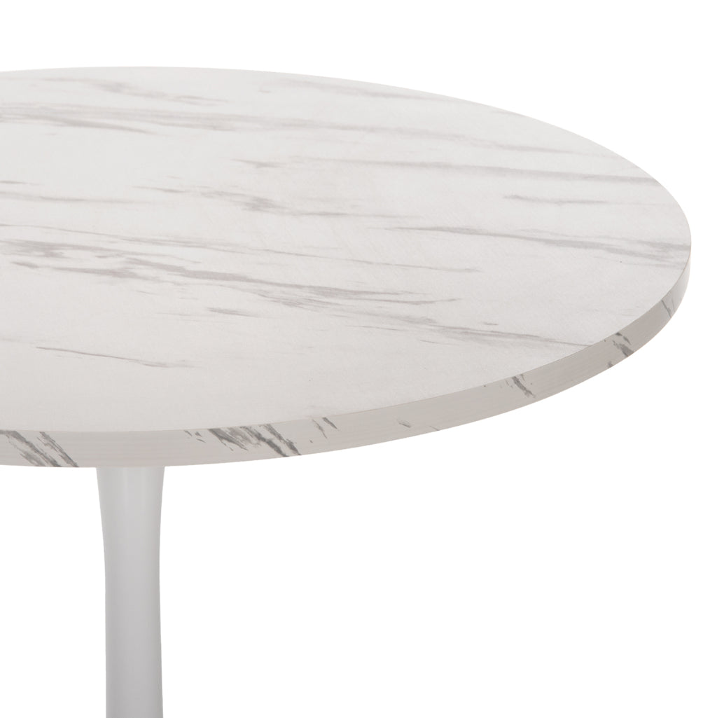 ΜΜ9421.01--Представяме ви модерна кръгла маса за хранене (т.е. ротонда), с меламинова повърхност в цвят БЯЛ МРАМОР. Повърхността лежи върху БЯЛА метална цилиндрична колона, която има подходящите размери, за да поддържа адекватно масата. Кръглите маси са особено практични и красиви, защото нямат плотове и "водачи", нито ъгли или крака, които често създават неудобни ситуации. И накрая, тази ротонда е със задоволителен размер, което я прави отправна точка за вашата трапезария. РАЗМЕРИ: Φ90 X 74H cm Дебелина на повърхността: 2,5 cm Диаметър на кръгла подова основа: Φ50 cm. МАТЕРИАЛИ НА КОНСТРУКЦИЯТА: Носещата колона е метална, а повърхността е меламин с отлично качество. . Меламинът е вид дървесина под формата на ПДЧ. ПДЧ са продукти, които имат формата на плоча (панел). Като материал е много издръжлив и с голяма твърдост. Така че това е синтетичен материал с много твърда повърхност, което го прави много устойчив на драскотини, абразия и петна. ПОДДРЪЖКА: За поддръжка на ротондата е достатъчно почистване на прах на редовни интервали и минаване с мокра кърпа. За повърхността, разбира се, можете да използвате и леки почистващи препарати на пазара. ПРЕДИМСТВА: •Стабилна и безопасна конструкция •Красив дизайн •Може да обслужва 4 души •Идеален за трапезарията у дома, но и за професионални помещения, като ресторанти, хотели и банкетни зали като цяло. Продуктът се доставя без поръчка