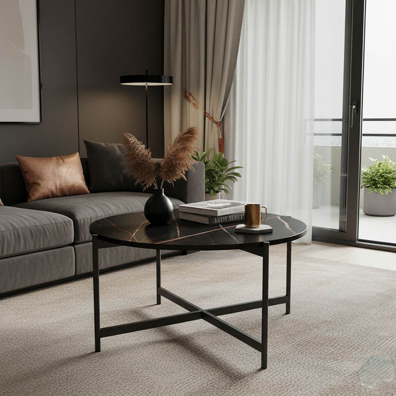 Маса за кафе Aisle меламин черен мрамор-черен метал Φ80x45cm