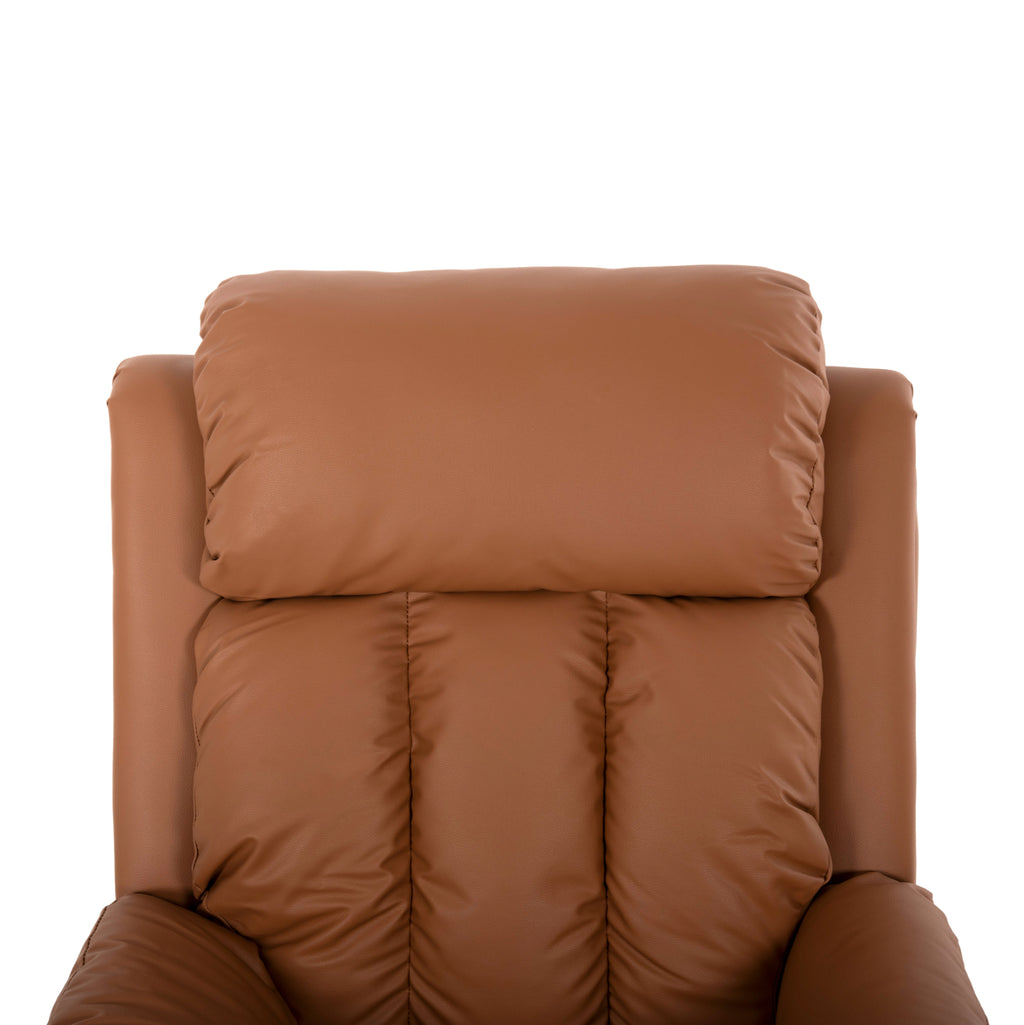 HAPPER, тапициран с КАФЯВА PU кожа, е красиво кресло, което ще Ви достави удоволствие. Визуално изпълва сетивата на всеки с богатите си размери и удобни възглавнички. Гърбът е висок, а дълбоката седалка и подлакътниците ви приканват да разтворите ръце върху богатите им възглавници. А когато се приберете от работа и искате да се отпуснете пред телевизора, или да почетете вестника си, или любимата си книга пред прозореца или камината, тогава релакс механизмът с лост от външната страна на ръката, съчетан със сгъваемата поставка за крака, ще ви предложи уникални моменти на релакс. Основната характеристика на това кресло обаче е, че има масажен механизъм! Натискате съответните бутони на жичния контролер и се наслаждавате на релаксиращ 8-точков масаж. Незабавно отпуска мускулите и облекчава схващанията, мускулните болки и стреса. ** Внимание, продуктът не замества Вашия лекар и не лекува заболявания и наранявания. РАЗМЕРИ: 76x94x102H см. Размери на седалката: 45х58 см. Размери на гърба: 55х67см. Височина на седалката: 46 см. Височина на ръцете: 56 см. Височина на крака: 5см. Максимален размер на облягане: 96 см. МАТЕРИАЛИ НА ИЗРАБОТКА: Цялата тапицерия на фотьойла е изработена от висококачествена PU кожа. Това е синтетична кожа и е еволюцията на изкуствената кожа, но с основната характеристика, че не се различава лесно от окото от истинската кожа. Съставът му е основно полиуретан и полиамидни микровлакна, за разлика от изкуствената кожа, която основно съдържа PVC. ПОДДРЪЖКА: Благодарение на издръжливите строителни материали, фотьойлът е удобен за употреба. По-специално PU кожата не се нуждае от специална поддръжка, защото не се износва лесно, не показва "стрии" и цветът не се влияе от слънчевата радиация. Едно минаване с мека влажна кърпа е достатъчно. Ако има петно, което не излиза с мокра кърпа, тогава се използва само мек препарат с неутрално действие. ПРЕДИМСТВА: •Здрава конструкция •Големи размери •Накланящ се механизъм •Масажиращ механизъм с контрол •Лесна поддръжка •Невероятно съотношение цена/качество •Лесно сглобяване с инструкции * Продуктът се доставя в опаковка в несглобено състояние. ** Цветопредаването на продукта може леко да се различава от неговото фотографско представяне на вашия екран.