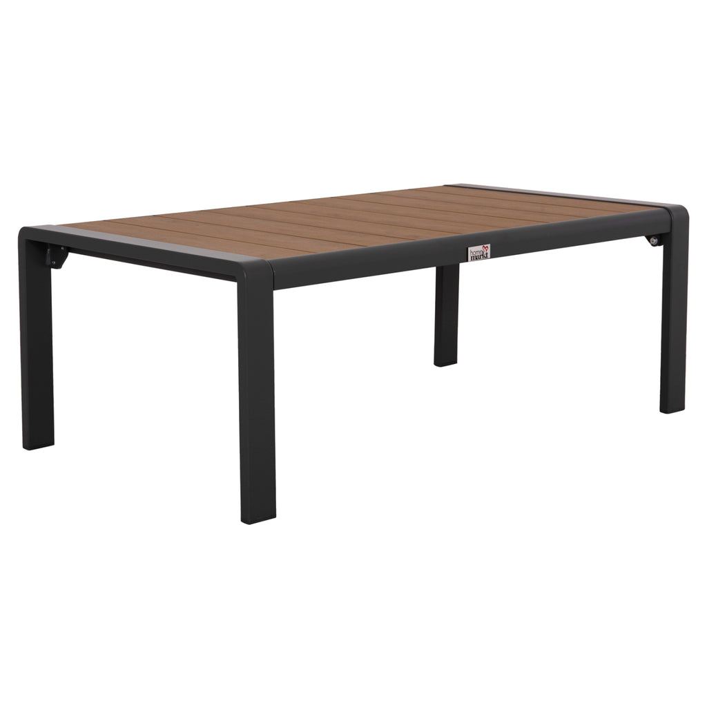 Polywood е 100% рециклируем материал, който не се влияе от вода, влага, мухъл или UV лъчи. Алуминиевата рамка не ръждясва и не изисква специална поддръжка. Просто използвайте мека кърпа, вода и неутрален почистващ препарат, за да поддържате масата в идеален вид.