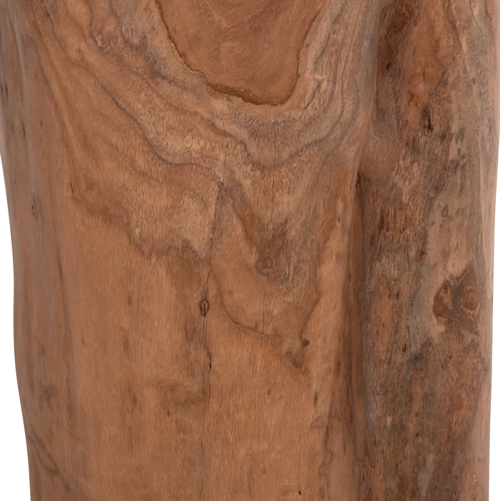 Кръглата помощна маса/табуретка TRONCO е дефиницията за рустик стил в обзавеждането. Дървото е в естествения си цвят, но и в естествения си вид. Рустик мебелите са мебели, които използват пръчки, клони или трупи за естествен вид. Този стил се характеризира с естествени текстури, неутрални цветове, прости шарки, масивно дърво и естествено светло осветление. Целият този стил придава топъл и тежък чар на всяка стая. Освен това е доста гъвкав и работи чудесно с много други стилове като традиционен или индустриален декор. Все пак усещането за природа действа успокояващо на повечето хора. Идеален е за дома, но също така и за хотели, Airbnb, заведения за обществено хранене като декоративен елемент и др. --- Съществуващите пукнатини или тези, които могат да се образуват с течение на времето, се дължат на свиването-разширяването на живия организъм, наречен масивно дърво, и не са производствен дефект, придавайки оригиналност и уникален дизайн на вашето пространство. По време на производствения процес съществуващите пукнатини се изглаждат и стабилизират с материал от същата дървесина. Поради това МОЖЕ ДА ИМА ЦВЕТОВИ ВАРИАЦИИ И РАЗЛИКИ В РАЗМЕРИТЕ НА ПРОДУКТА поради размерите на обработената дървесина. Това не са дефект на продукта. РАЗМЕРИ: Φ30x45Y см. ---приблизителни МАТЕРИАЛИ НА СТРОИТЕЛСТВО: Конструкцията е от масивно тиково дърво. Когато говорим за масивно дърво, имаме предвид дървета, направени изцяло от ствола на дърво. Масивната дървесина е най-скъпият избор по отношение на дървесината, но се откроява със своята вечна естетика. Тикът е най-популярният вид твърда дървесина. Той е изключително тежък, с висока якост, устойчив на атмосферни влияния, напукване и не се разлага. Често водите на дървото му са силни и прави. Използва се за различни вътрешни и външни конструкции. ПОДДРЪЖКА: Фактът, че ТИК е част от твърдата дървесина, го прави много лесен за поддръжка. Всичко, от което се нуждае, е почистване от прах и при необходимост почистване с влажна кърпа.