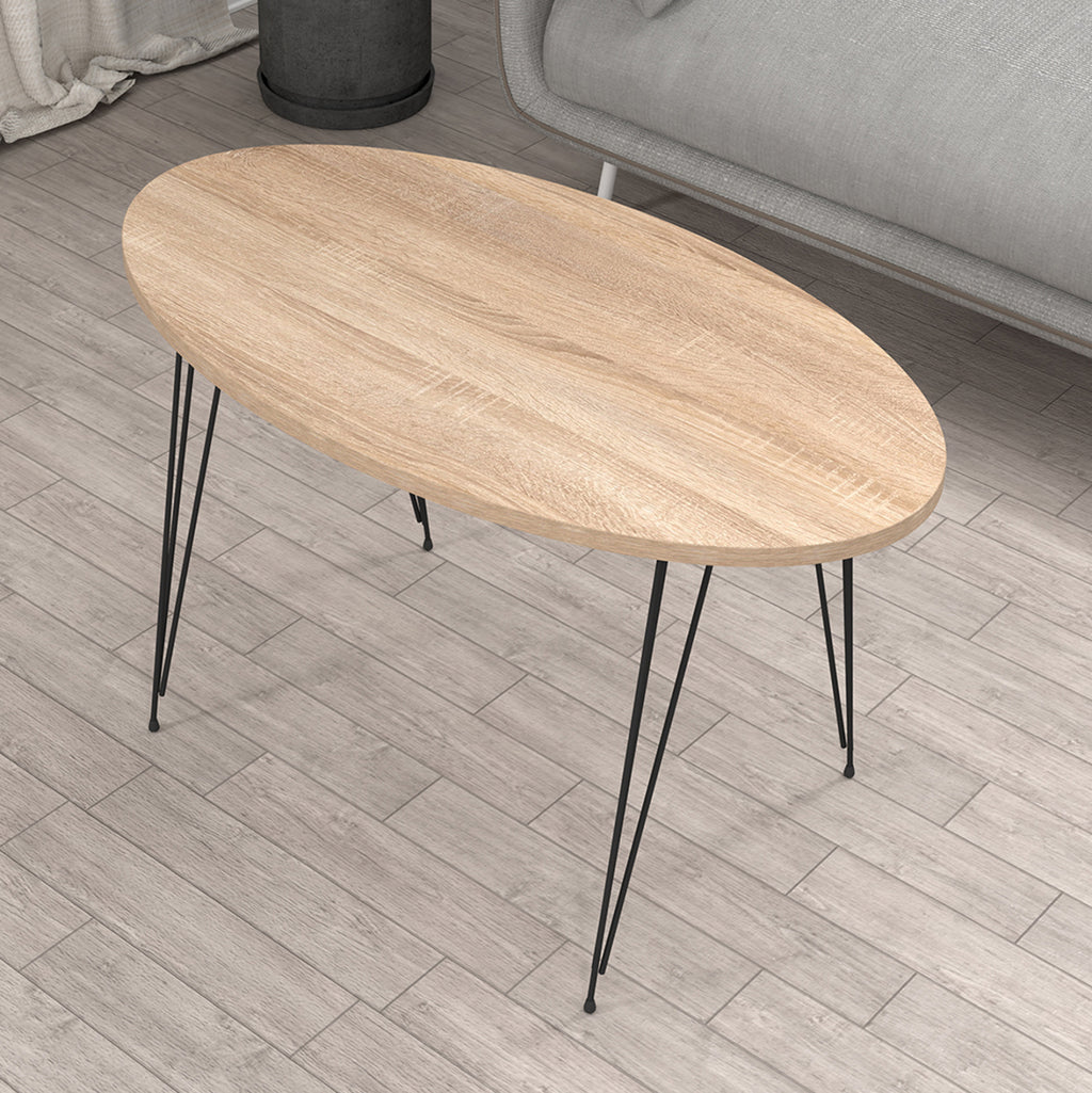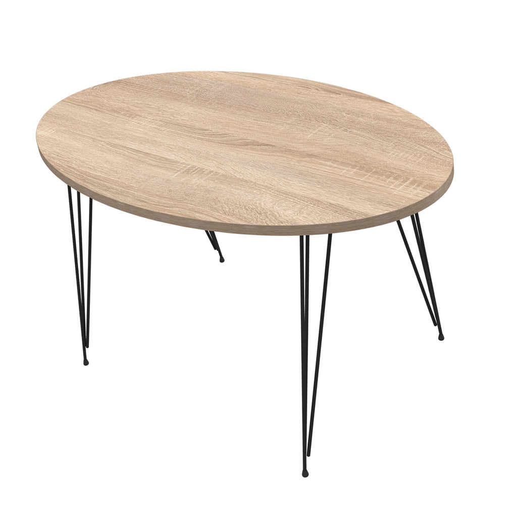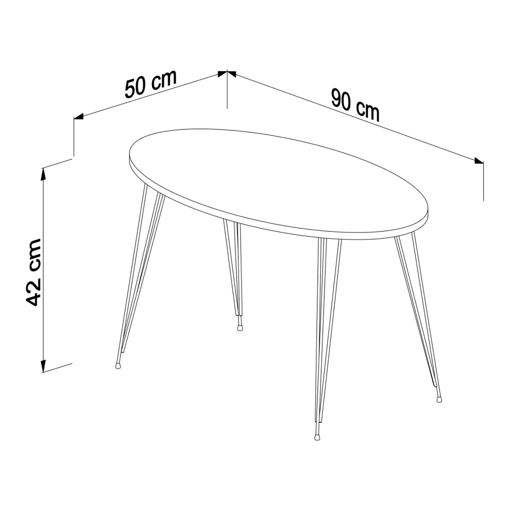 Новата овална холна маса GRANIT е с 18мм меламинова повърхност в цвят SONAMA, а краката са изработени от метални пръти в ЧЕРЕН цвят. Маса, която ще задоволи и обслужи всяка ваша нужда в хола. РАЗМЕРИ: 90x50x42H см. ПОДДРЪЖКА: Както повърхността, така и краката се почистват лесно с влажна кърпа. КАКВО ХАРЕСВАМЕ: •Дизайн •Практичност •Съотношение цена/качество *Продуктът се доставя във фабрична опаковка ** Цветопредаването на продукта може леко да се различава от фотографското представяне на вашия екран.