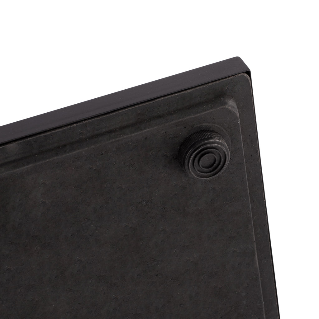 - Квадратна метална основа с цимент: Дъното на основата е направено от метал и цимент, което го прави изключително издръжлив и стабилен