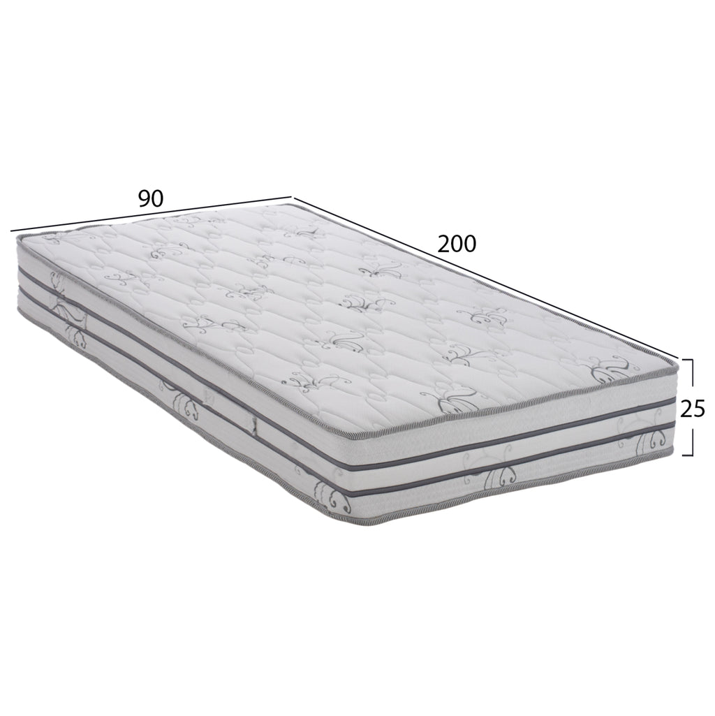 Представяме ви чисто новата колекция матраци DREAMTOPIA! Колекция, която създадохме, за да ви предложим най-доброто изживяване при сън, използвайки само най-добрите материали и разбира се най-модерното, което се предлага в производството на матраци. Серията “ANDRIANA” е с POCKET SPRINGS и е двулицева, с 3 години гаранция! В крайна сметка матракът е средство за благополучие и релакс. Спящият здрав сменя позицията си на сън до шестдесет пъти на нощ (за да избегне болки в мускулите и ставите). Умението безпрепятствено да променя позицията си е необходимо условие за възстановителен сън. Равномерното разпределение на натиска предотвратява болката в тялото, където може да има най-голям натиск (рамене, бедра, пети) и гарантира добро кръвообращение. Отличното регулиране на температурата (нито прекалено горещо, нито твърде студено) и влажността (абсорбиране на потта) са идеално адаптирани към индивида. Този конкретен матрак MONO включва независима пружинна технология, която е може би най-популярният тип матрак с нова технология. Сърцето на матрака се състои от няколко независими пружини, затворени в цилиндрично джобче. Всяка пружина е плътно и равномерно подравнена със съседните пружини. Тази техника позволява на пружините да се движат независимо от своите съседи. Тази сложна техника прави джобните матраци адаптивни към формата на тялото. ТЕХНИЧЕСКИ ХАРАКТЕРИСТИКИ: Размери: 90х200см. Височина на матрака: 24см. •Покет пружини 260бр/м² с височина на пружината 20см •Поддържаща пяна по периметъра •1 лист FELTRON 1200g от всяка страна •1 лист пяна 1cm от всяка страна •1 лист полиетилен/памучен пълнеж 200g от всяка страна •Трикотаж от всяка страна ТВЪРДОСТ: 2/5 ("5" е най-твърдото) ПРОИЗВОДСТВО МАТЕРИАЛИ: За по-добро разбиране на техническите характеристики на матрака, ние изброяваме някои подробности, за да разберете качеството на изработката им. И двете повърхности на матрака са изработени от трикотаж, за еднаквост, тъй като матракът е двулицев. Дунапренът от двете страни е дунапрен с отлично качество. FELTRON е бяла и памучна твърда постелка, която осигурява изолация и подсилване между пружините и повърхностните материали. Поли/памучната вата се произвежда чрез смесване на полиестерни и памучни влакна, обработени и стерилизирани. Комбинира предимствата на горните 2 материала и постига идеален резултат от комфорт и мекота. И накрая, сърцето на матрака се състои от 260 бр./м2 независими пружини, докато от четирите страни на матрака има слой от пяна за по-добра странична опора. Имайте предвид, че матракът е двулицев, затова трябва да го обръщате на равни интервали, за да не бъде „притиснат“ само от едната страна. ПОДДРЪЖКА: • Периодично излагайте матрака си на слънце за подходяща вентилация • Оставяйте прозорците отворени за 30 минути всеки ден, за да премахнете влагата, особено през зимата, която е основната причина за лошата миризма на матрака • Не огъвайте матрака, защото има риск от деформация и повреда • Не го използвайте като „батут” от деца • Дръжте го сух • Перете чаршафите на висока температура и гладете добре, за да убиете различните микроорганизми и ги поставете сухи върху матрака • Не гладете върху матрака • Пазете го от течности и го почиствайте локално само със специални почистващи препарати • Основата на матрака трябва да е без издатини, кривини и неравности. Да