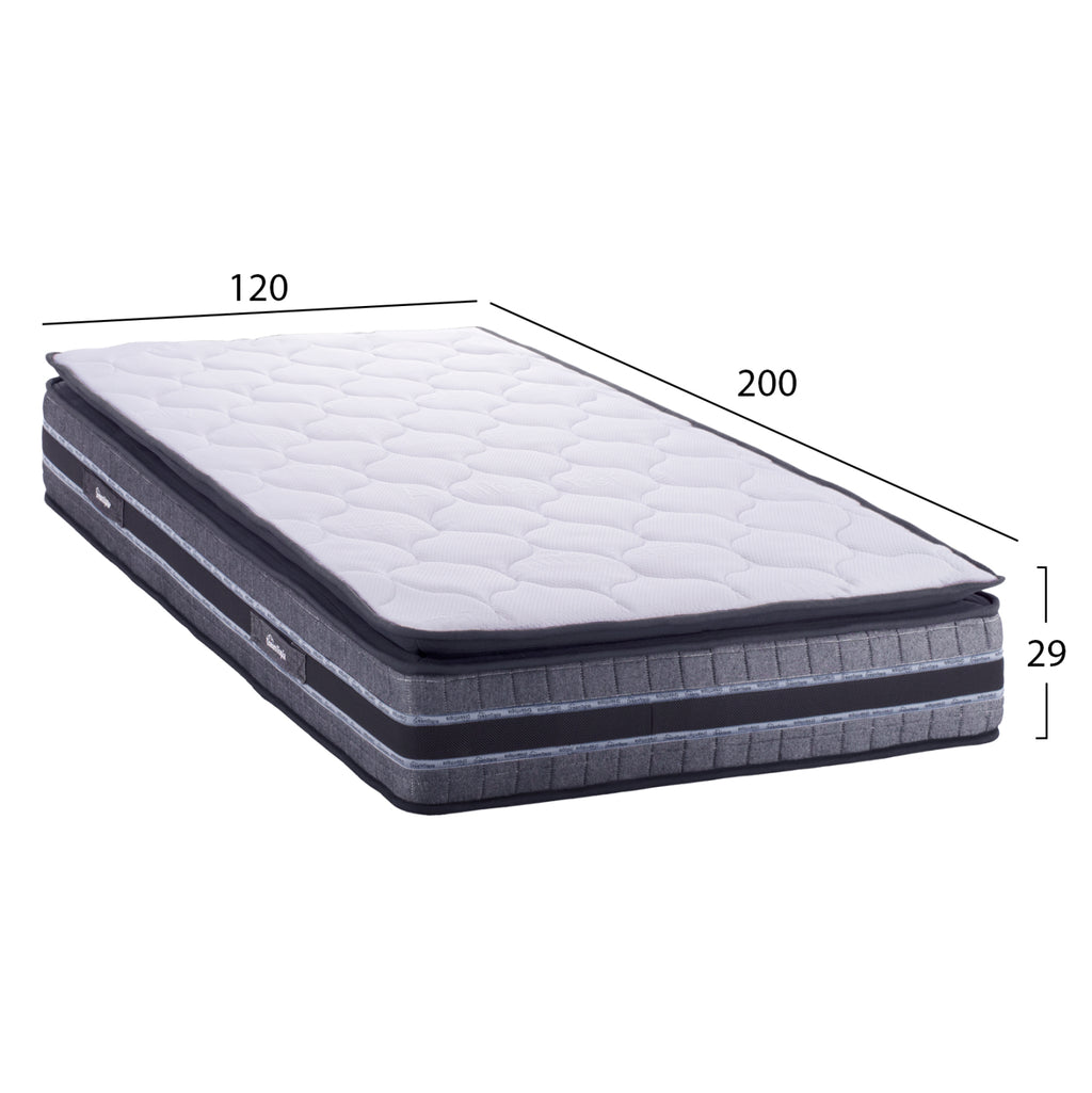 Представяме ви чисто новата колекция матраци DREAMTOPIA! Колекция, която създадохме, за да ви предложим най-доброто изживяване при сън, използвайки само най-добрите материали и разбира се най-модерното, което се предлага в производството на матраци. Серията “FRANKLIN” разполага с пружини Bonnell и тапицерия PILLOW-TOP и се предлага с 5 години гаранция! В крайна сметка матракът е средство за благополучие и релакс. Спящият здрав сменя позицията си на сън до шестдесет пъти на нощ (за да избегне болки в мускулите и ставите). Умението безпрепятствено да променя позицията си е необходимо условие за възстановителен сън. Равномерното разпределение на натиска предотвратява болката в тялото, където може да има най-голям натиск (рамене, бедра, пети) и гарантира добро кръвообращение. Отличното регулиране на температурата (нито прекалено горещо, нито твърде студено) и влажността (абсорбиране на потта) са идеално адаптирани към индивида. Подложка за възглавница се отнася за горната част на матрака или самия матрак като „матрак за възглавница“. Но какво на практика означава тази допълнителна повърхност и какво предлага на тялото? По същество горната част на възглавницата е повърхностен слой от мек материал, който е зашит и опакован в калъфа. Това осигурява меко усещане за "облак" на повърхността на матрака. Горните части на възглавниците започнаха като горни части за матраци (и тънки матраци или подложки за матраци), които се нанасяха върху матрак като допълнителна подплата. След това започнаха да се адаптират като нормални повърхности на матраци, докато днес могат да придружават почти всеки матрак с или без пружини. Какви са предимствата на горната част на възглавницата? Топ матракът е по-мек и плюшен по отношение на усещането, което оставя върху тялото. При повечето модели те са по-меки от матрака и в почти всички случаи допринасят за височината на матрака. Този конкретен матрак е направен с традиционната и по-издръжлива конструкция на матрака. Състои се от множество пружини от един и същи тип и твърдост, свързани в решетка. Тази мрежа е сърцето на матрака и отговаря за това как ще се разпредели тежестта. ТЕХНИЧЕСКА ХАРАКТЕРИСТИКА: Размери: 120х200см. Височина на матрака: 29 см. •116 пружини бонел/м2 с височина на пружината 14см. и 2,40 mm дебелина • Поддържаща периметър пяна • 1 лист Feltron 1200g от всяка страна • 1 лист Soft Foam 2 cm от горната страна • 1 лист Soft Foam Plus 3 cm от горната страна • 1 лист Ergo пяна 4 cm от долната страна • 1 лист Dacron Padding от всяка страна • Плетена тъкан от всяка страна от всяка страна • 3D лицева част ТВЪРДОСТ: 4/5 ("5" е най-твърдата) МАТЕРИАЛИ ЗА ИЗРАБОТКА: За по-добро разбиране на техническите характеристики на матрака, ние изброяваме някои подробности, за да разберем качеството на изработката им. И двете повърхности на матрака са изработени от трикотаж, дори повърхността на горната част на възглавницата. Меката пяна от двете страни е мек дунапрен, докато ERGO FOAM не се разпенва, е гъвкав и хипоалергенен с голяма издръжливост. Има анатомични свойства и за най-взискателното тяло. Ватата DACRON е бяла пухкава вата, която предлага анатомия. Той е хипоалергенен и антимикробен, като по този начин предлага чиста и здравословна среда за сън. Освен това осигурява правилна вентилация, елиминирайки ненужната влага. Това е вид полиестер. FELTRON е бяла и памучна твърда постелка, коят