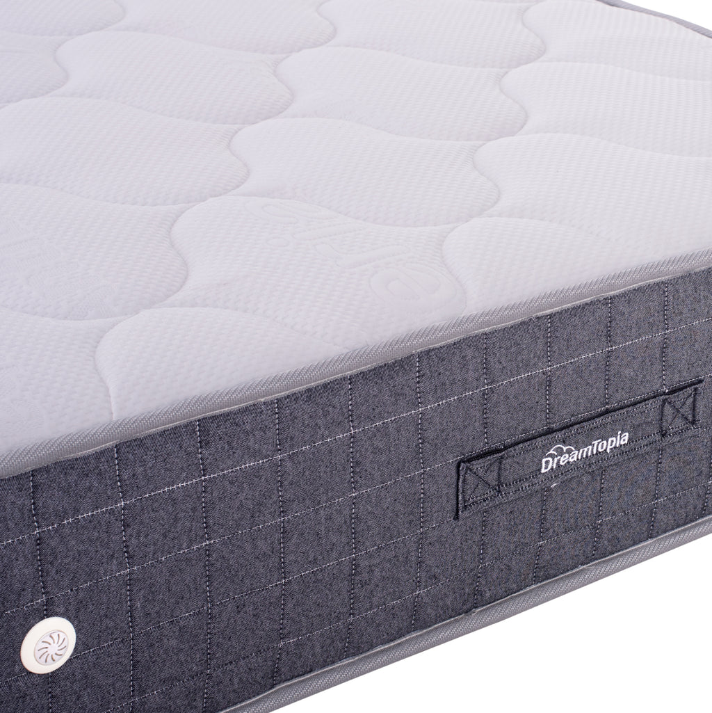 Представяме ви чисто новата колекция матраци DREAMTOPIA! Колекция, която създадохме, за да ви предложим най-доброто изживяване при сън, използвайки само най-добрите материали и разбира се най-модерното, което се предлага в производството на матраци. Серията “CLOUD09” разполага с пружини Bonnell и е двустранна, и се предлага с 3 години гаранция! Матракът е средство за благополучие и релакс. Спящият здрав сменя позицията си на сън до шестдесет пъти на нощ (за да избегне болки в мускулите и ставите). Умението безпрепятствено да променя позицията си е необходимо условие за възстановителен сън. Равномерното разпределение на натиска предотвратява болката в тялото, където може да има най-голям натиск (рамене, бедра, пети) и гарантира добро кръвообращение. Отличното регулиране на температурата (нито прекалено горещо, нито твърде студено) и влажността (абсорбиране на потта) са идеално адаптирани към индивида. Този конкретен матрак е направен с традиционната и по-издръжлива конструкция на матрака. Състои се от множество пружини от един и същи тип и твърдост, свързани в решетка. Тази мрежа е сърцето на матрака и отговаря за това как ще се разпредели тежестта. ТЕХНИЧЕСКИ ХАРАКТЕРИСТИКИ: Размери: 150х200см. Височина на матрака: 27см. •108 пружини бонел/м2 с височина на пружината 14см. и 2,40 мм дебелина • Поддържаща периметъра пяна • 1 лист Feltron 1200gr от всяка страна • 1 лист пяна 4 см от всяка страна • 1 лист пяна 1 см от всяка страна • 1 лист полипамучен пълнеж от всяка страна • Плетена тъкан от всяка страна ТВЪРДОСТ: 3/5 („5” е най-твърдият) МАТЕРИАЛИ НА КОНСТРУКЦИЯ: За За да разберете по-добре техническите характеристики на матрака, ето някои подробности, които да ви дадат представа за качеството на изработката им. И двете повърхности на матрака са изработени от трикотаж, за еднаквост, тъй като матракът е двулицев. Дунапренът от двете страни е дунапрен с отлично качество. Поли/памучната вата се произвежда чрез смесване на полиестерни и памучни влакна, обработени и стерилизирани. Комбинира предимствата на горните 2 материала и постига идеален резултат от комфорт и мекота. FELTRON е бяла и памучна твърда постелка, която осигурява изолация и подсилване между пружините и повърхностните материали. В основата на матрака има 108 пружини тип Бонел с дебелина 2.40мм, а около периметъра има допълнителна опора с дунапрен с отлично качество. Имайте предвид, че матракът е двулицев, затова трябва да го обръщате на равни интервали, за да не бъде „притиснат“ само от едната страна. ПОДДРЪЖКА: • Периодично излагайте матрака си на слънце за подходяща вентилация • Оставяйте прозорците отворени всеки ден за 30 минути, за да премахнете влагата, особено през зимата, която е основната причина за лошата миризма на матрака • Не огъвайте матрака, защото има риск от деформация и повреда • Не го използвайте като „батут” от деца • Дръжте го сух • Перете чаршафите на висока температура и гладете добре, за да убиете различните микроорганизми и ги поставете сухи върху матрака • Не гладете върху матрака • Пазете го от течности и го почиствайте локално само със специални почистващи препарати • Основата на матрака трябва да е без издатини, кривини и неравности. Трябва да е на права повърхност. ПРЕДИМСТВА: Матраците с непрекъснати пружини бонел са ортопедични и предлагат опора на гръбначния стълб дори и н