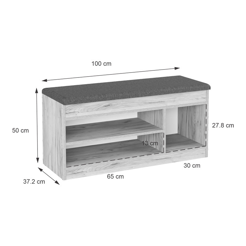 Защо да изберете Oriental: Шкафът за обувки с вградена седалка е проектиран с мисъл за удобството и нуждите на съвременния дом. Със своите компактни размери, той се вписва лесно както в малки антре пространства, така и в по-големи коридори или спални. Горната част е предназначена за сядане по време на обуване, като предлага стабилна и удобна повърхност. Под седалката има просторно отделение за обувки, което ви позволява да поддържате ред и чистота.