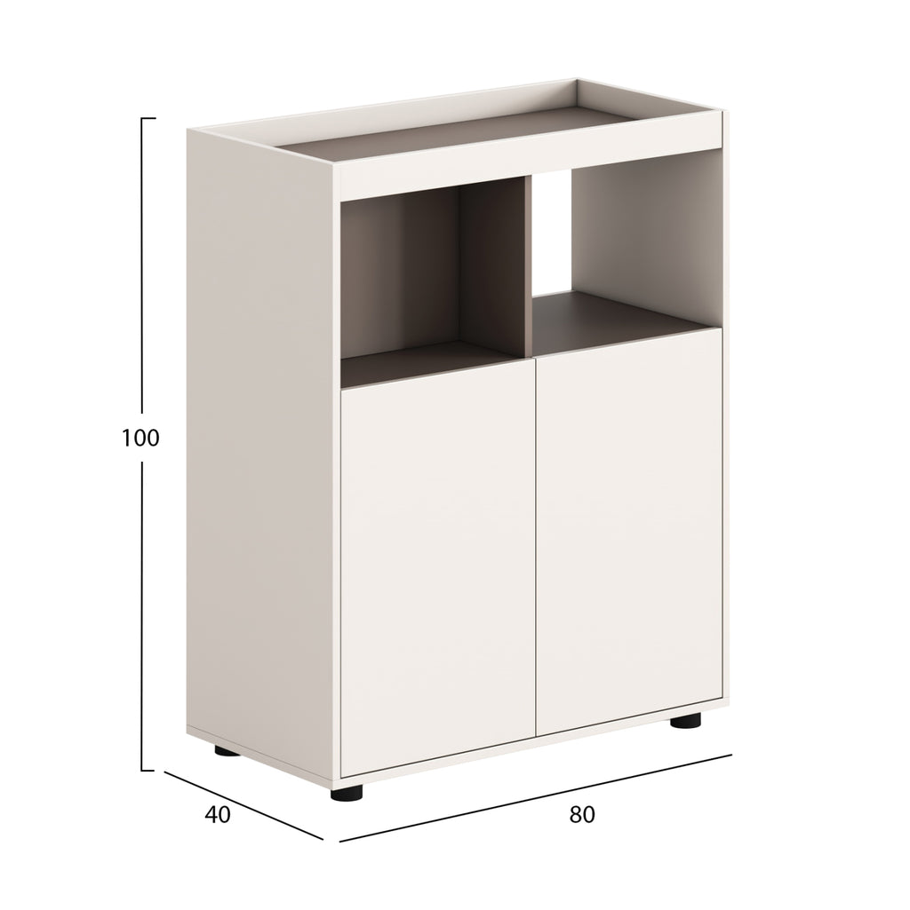 Шкаф/библиотека NEWLINE в кремаво и светлокафяво Късата библиотека NEWLINE е практично и стилно решение за съхранение в офиси и професионални пространства. Комбинацията от кремаво меламин със светлокафяво създава ярък и модерен ефект, който лесно се интегрира във всяка офис среда. Лявата страна има шкаф и отворено пространство за съхранение с "гръб", докато дясната страна се състои от същия шкаф, но отвореното пространство за съхранение няма "гръб", предлагайки незабавен достъп и гъвкавост при използване. ______________________________________ Характеристики на продукта •Меламин в кремаво и светлокафяво •Шкафове и отворени зони за съхранение •Идеален за офиси, домашни офиси и професионални пространства ______________________________________ Размери •Общи размери: 80x40x100H см. _____________________________________ Поддръжка • Почиствайте с мека, леко влажна кърпа • Избягвайте абразивни материали и силни препарати • Подсушете повърхността след почистване __________________________________________ Предимства • Комбинира затворено и отворено съхранение в една мебел • Спестяване на място благодарение на малката височина • Функционално разположение за лесна организация • Вечен дизайн, подходящ за всеки офис • Здрава конструкция за ежедневна употреба ----------------------------------------------------------------------------------------------------------------- ***ПРОДУКТЪТ ТРЯБВА ДА СЕ СГЛОБЯВА САМО ОТ КВАЛИФИЦИРАНИ ТЕХНИЦИ*** ** Цветопредаването на продукта може леко да се различава от фотографското му представяне на вашия екран.