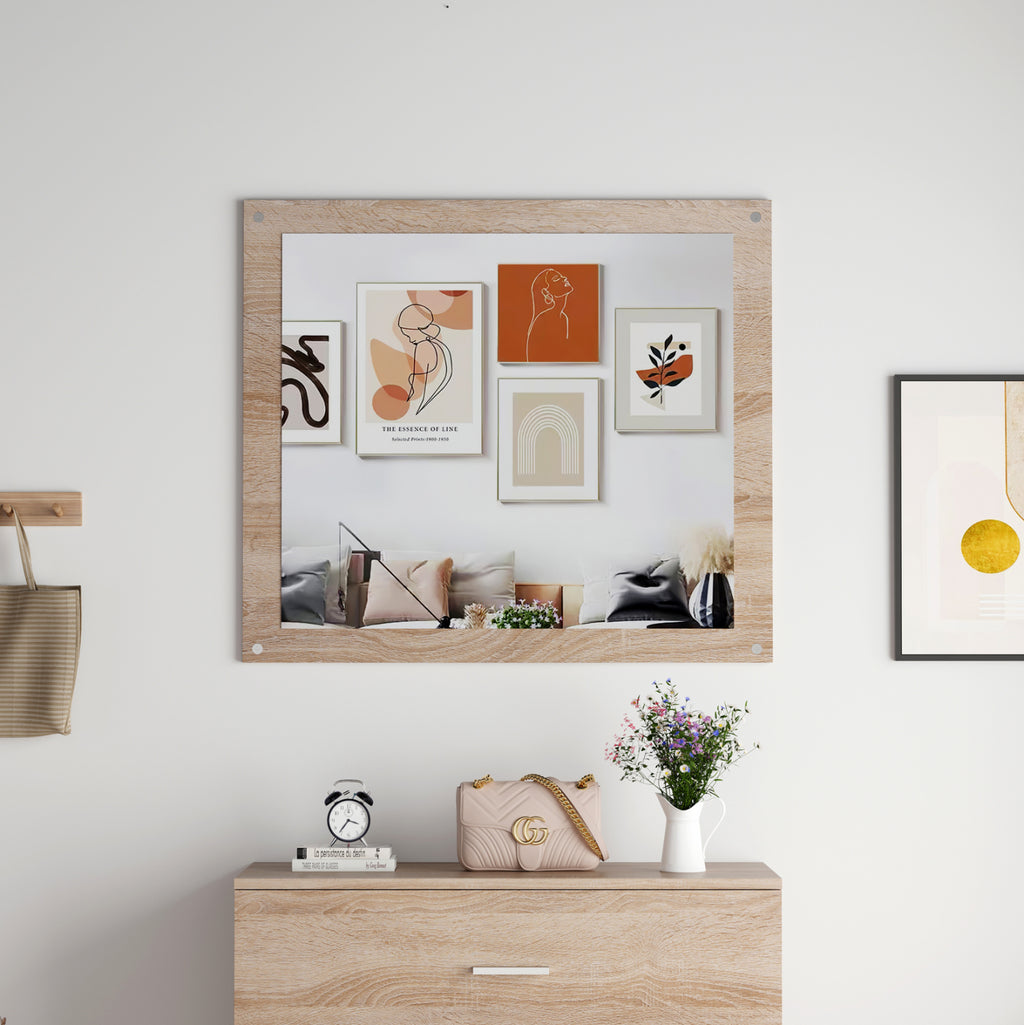 КГ4360 е правоъгълно стенно огледало с рамка в цвят SONAMA, елегантно и с много задоволителни размери. Полезен "инструмент" за различни стаи на къщата, който ще пасне на вашата декорация, независимо дали е класическа или по-модерна. РАЗМЕРИ: 80x1.8x70H см. МАТЕРИАЛ НА ИЗРАБОТКА: Рамката на огледалото е изработена от меламин. Меламинът е вид дървесина под формата на ПДЧ (панел). Като материал е много издръжлив и с голяма твърдост. Така че това е синтетичен материал с много твърда повърхност, което го прави много устойчив на драскотини, абразия и петна. ПОДДРЪЖКА: Меламинът се почиства много лесно от петна благодарение на твърдата си повърхност. Можете да избършете с влажна кърпа и това е достатъчно. За упорити петна можете да използвате мек почистващ препарат. ** Цветопредаването на продукта може леко да се различава от неговото фотографско представяне на вашия екран.