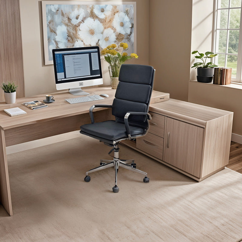 * Pu изкуствена кожа: Тапицерия с висококачествена изкуствена кожа, която осигурява издръжливост във времето, както и възможност за лесно почистване. Предлага се в класически черен цвят.