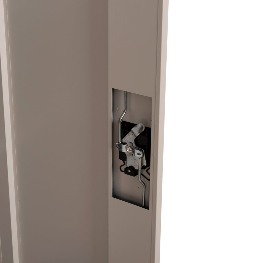 CLOD е практичен метален гардероб, създаден с мисъл за капацитет и издръжливост. Тя е двукрила, като двете врати се затварят точно в средата на конструкцията, а интериорът е разделен на 3 основни зони с Т-образна метална преграда. Горната част е единична като детско креватче, докато едната страна има метален прът за окачване на предмети, а другата има 2 рафта, които създават 3 нива за съхранение. Вратите са с ключалка, която се заключва с ключ, а цветът на гардероба е много светло сив. РАЗМЕРИ: 90x40x180H см. МАТЕРИАЛИ НА ИЗРАБОТКА: Гардеробът е метален с електростатично боядисване. Електростатичното боядисване е процес на сухо покритие, използван като метално покритие. Електростатичното боядисване е нанасяне на сух прах чрез електростатичен процес, който след това се „свързва“ към метала чрез топлина. ПОДДРЪЖКА: Можете да избършете всички повърхности с влажна кърпа, а ако има упорити петна, можете да използвате мек почистващ препарат. ПРЕДИМСТВА: •Здрава конструкция •Голяма вместимост •Задоволителни размери •Съчетава качество на конструкцията с ергономичност •Съотношение цена/качество Забележки: Продуктът се доставя разглобен във фабрична опаковка, с подробна инструкция за монтаж.