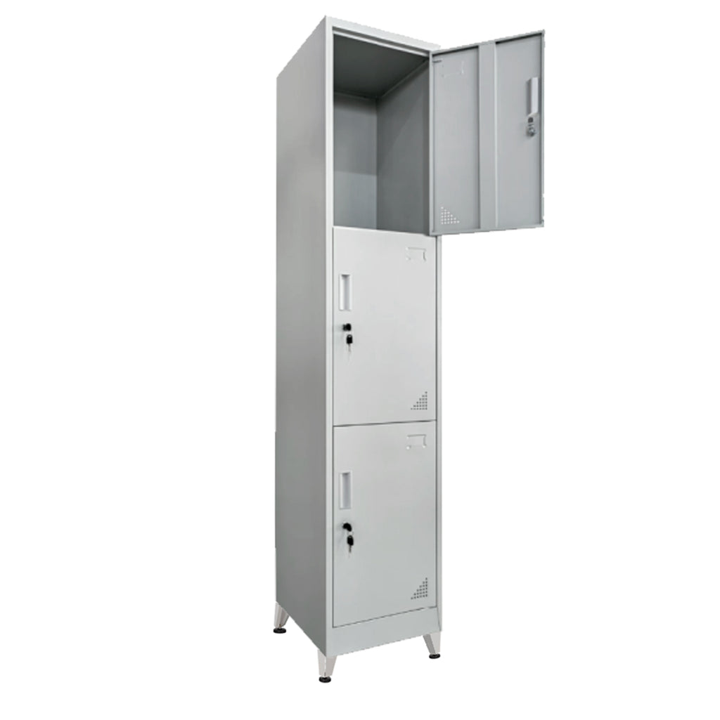 BELFAST е метален единичен багажник с три вертикално разположени шкафчета, които се заключват с ключ. Насочена е основно към професионални пространства, които имат нужда от подобна мебел. Всяка жабка има едно място за съхранение, докато вратите също имат решетки за вентилация. Краката са с регулатори за регулиране на височината. Цветът е СВЕТЛО СИВ. РАЗМЕРИ: 38.5x45x195H см. МАТЕРИАЛИ НА КОНСТРУКЦИЯТА: Носилката е метална с електростатично боядисване. Електростатичното боядисване е процес на сухо покритие, използван като метално покритие. Електростатичното боядисване е нанасяне на сух прах чрез електростатичен процес, който след това се „свързва“ към метала чрез топлина. ПОДДРЪЖКА: Можете да избършете всички повърхности с влажна кърпа, а ако има упорити петна, можете да използвате мек почистващ препарат. Забележки: - Продуктът се доставя разглобен във фабрична опаковка, с подробна инструкция за сглобяване. - Цветопредаването на продукта може леко да се различава от неговото фотографско представяне на вашия екран.
