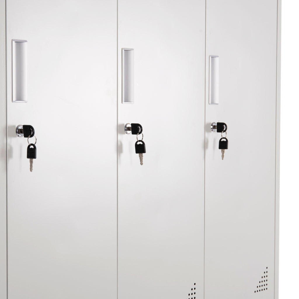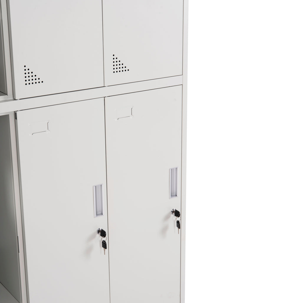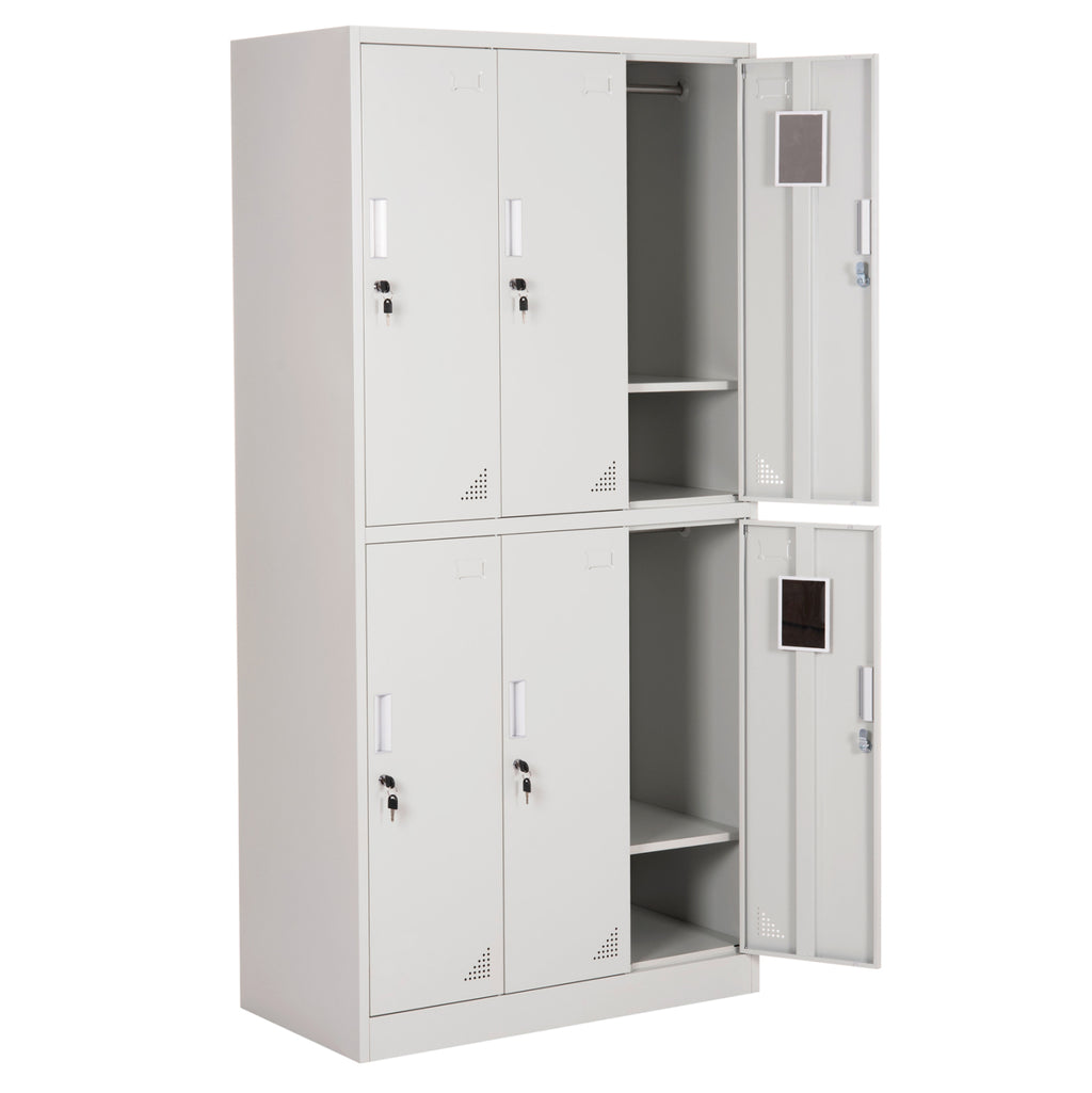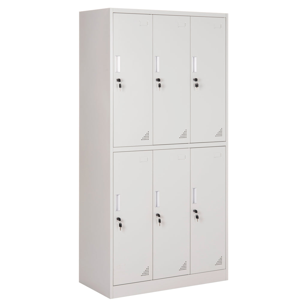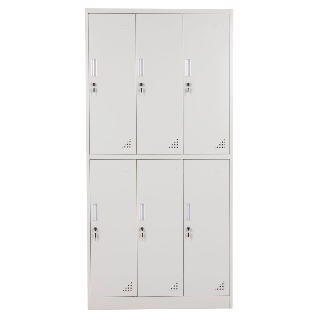 БРАЙЛА е метална ракла с 6 шкафчета, които се заключват с ключ. Насочена е основно към професионални пространства, които имат нужда от подобна мебел. Всеки шкаф има рафт и решетка за закачане на дрехи, а вратите имат и решетки за вентилация. Цветът е СВЕТЛО СИВ. РАЗМЕРИ: 90x45x185H см. МАТЕРИАЛИ НА КОНСТРУКЦИЯТА: Носилката е метална с електростатично боядисване. Електростатичното боядисване е процес на сухо покритие, използван като метално покритие. Електростатичното боядисване е нанасяне на сух прах чрез електростатичен процес, който след това се „свързва“ към метала чрез топлина. ПОДДРЪЖКА: Можете да избършете всички повърхности с влажна кърпа, а ако има упорити петна, можете да използвате мек почистващ препарат. Забележки: - Продуктът се доставя разглобен във фабрична опаковка, с подробна инструкция за сглобяване. - Цветопредаването на продукта може леко да се различава от неговото фотографско представяне на вашия екран.
