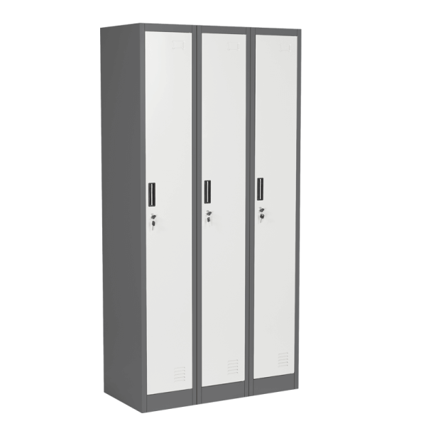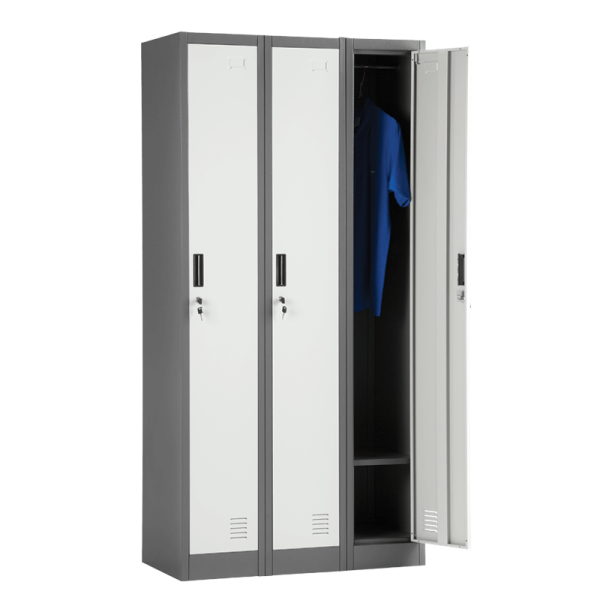 Шкафът разполага с 3 отделни врати, всяка с възможност за заключване, което гарантира сигурност на личните вещи или документи на всеки потребител.