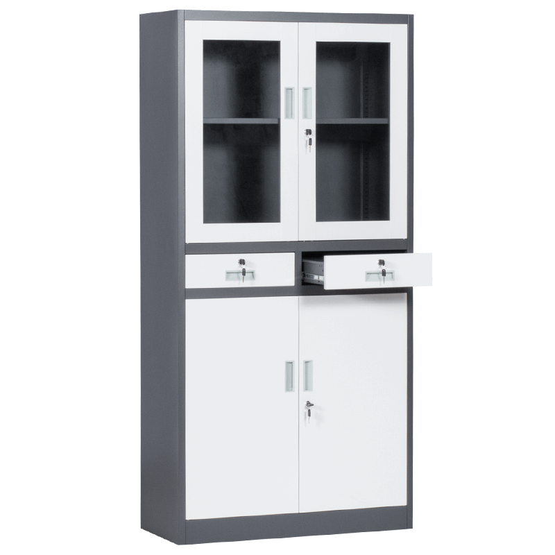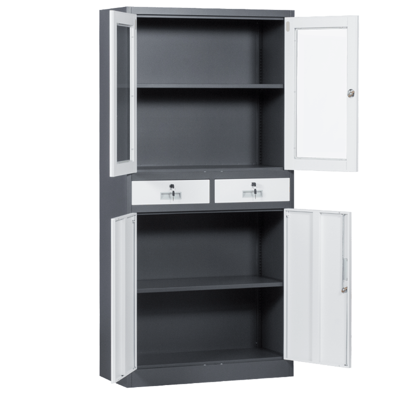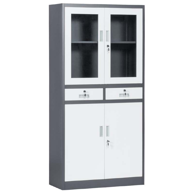 Металният шкаф за документи Carmen CR-1247 Е L SAND е модел с две отделения и две чекмеджета, всяко от които се заключва. В горния и долния шкаф има по 1 рафт с регулируема височина. Пълна информация за размерите и характеристиките на модела ще намерите в таблицата в таб/поле "Техническа информация".