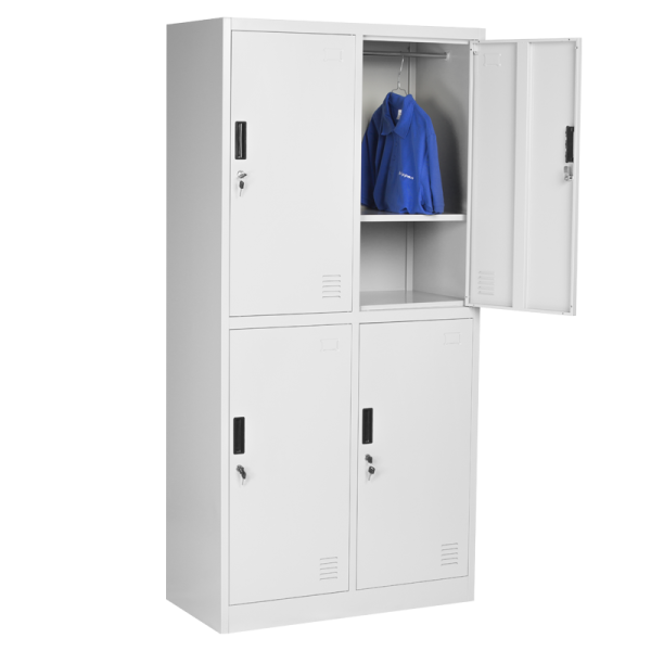 Шкафът разполага с механизъм за заключване, който гарантира сигурност на съхраняваните вещи. Вентилационните отвори осигуряват циркулация на въздух и предотвратяват неприятни миризми.