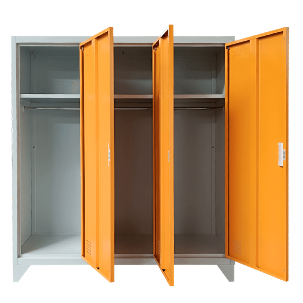 Металният шкаф Carmen CR-1603 KZ разполага с 3 отделения, всяко от което има лост за закачалки и един регулируем рафт. Вратите са с магнитно затваряне, вентилационни отвори за приток на въздух и място за поставяне на етикет. Моделът позволява монтаж към стена. Ако търсите метални шкафчета за детска градина или училище, Carmen CR-1603 KZ е чудесно решение, което се предлага в няколко цвята.