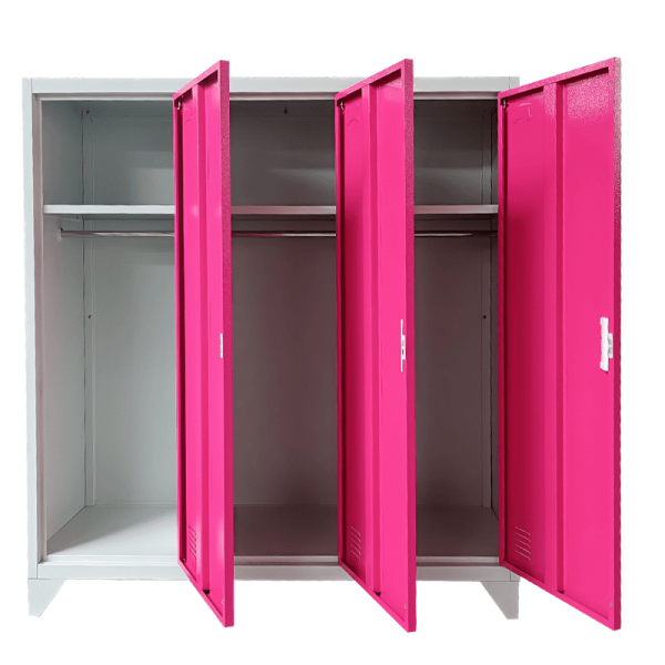 Металният шкаф Carmen CR-1603 KZ разполага с 3 отделения, всяко от което има лост за закачалки и един регулируем рафт. Вратите са с магнитно затваряне, вентилационни отвори за приток на въздух и място за поставяне на етикет. Моделът позволява монтаж към стена. Ако търсите метални шкафчета за детска градина или училище, Carmen CR-1603 KZ е чудесно решение, което се предлага в няколко цвята.