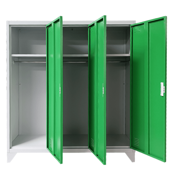 Металният шкаф Carmen CR-1603 KZ разполага с 3 отделения, всяко от което има лост за закачалки и един регулируем рафт. Вратите са с магнитно затваряне, вентилационни отвори за приток на въздух и място за поставяне на етикет. Моделът позволява монтаж към стена. Ако търсите метални шкафчета за детска градина или училище, Carmen CR-1603 KZ е чудесно решение, което се предлага в няколко цвята.