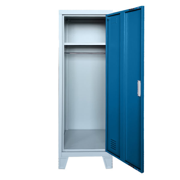 Метален шкаф Carmen CR-1605-1 JZ е единичен метален гардероб с плътна врати, която се затваря с помощта на магнитна система. Отделението разполага с рафт с товароносимост до 40 кг, вграден лост за закачалки и вентилационен отвор за добра циркулация на въздуха. Моделът е снабден с крака с височина 10 см, които улесняват почистването под шкафа. Изработен е от праховобоядисан метал с грапаво-шагрен покритие. Подходящ е за оборудване на детски градини.