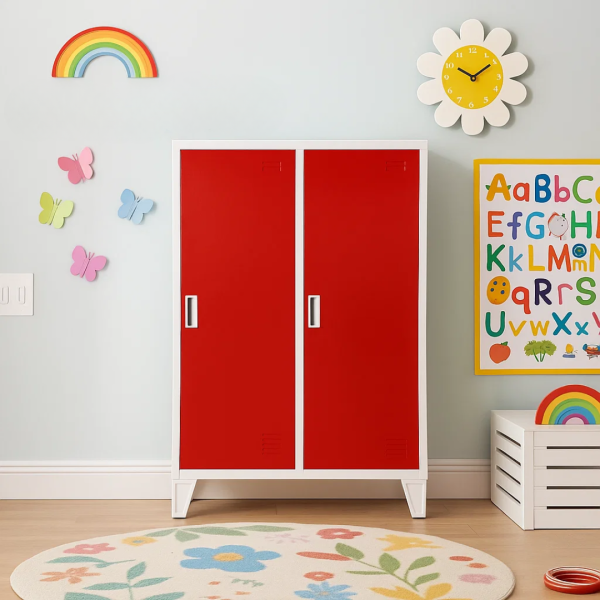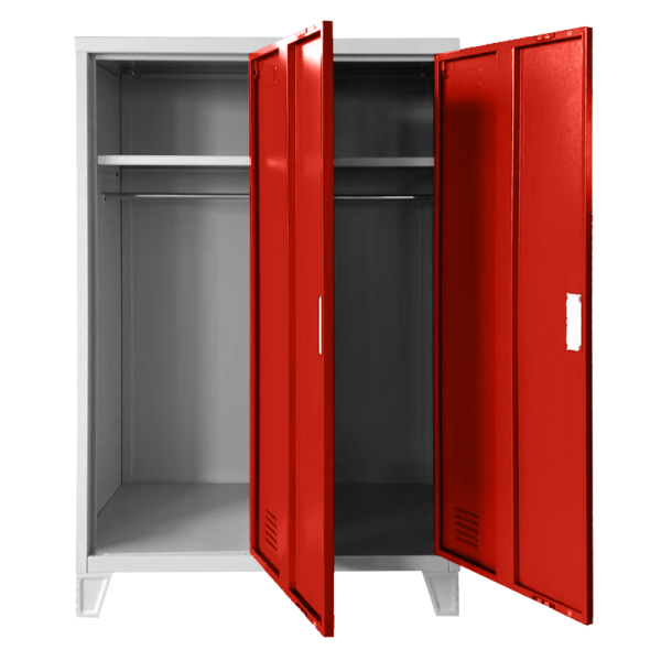 Метален шкаф Carmen CR-1605-2 JZ е двоен метален гардероб с две плътни врати, които се затварят с помощта на магнитна система. Всяко отделение разполага с рафт с товароносимост до 40 кг, вграден лост за закачалки и вентилационен отвор за добра циркулация на въздуха. Моделът е снабден с крака с височина 10 см, които улесняват почистването под шкафа. Изработен е от праховобоядисан метал с грапаво-шагрен покритие. Подходящ е за оборудване на детски градини.