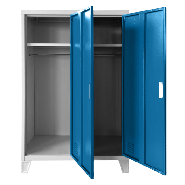 Метален шкаф Carmen CR-1605-2 JZ е двоен метален гардероб с две плътни врати, които се затварят с помощта на магнитна система. Всяко отделение разполага с рафт с товароносимост до 40 кг, вграден лост за закачалки и вентилационен отвор за добра циркулация на въздуха. Моделът е снабден с крака с височина 10 см, които улесняват почистването под шкафа. Изработен е от праховобоядисан метал с грапаво-шагрен покритие. Подходящ е за оборудване на детски градини.