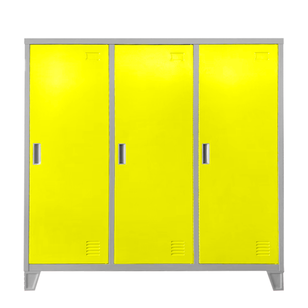 Метален шкаф Carmen CR-1605-3 JZ е троен метален гардероб с три плътни врати, които се затварят с помощта на магнитна система. Всяко отделение разполага с рафт с товароносимост до 40 кг, вграден лост за закачалки и вентилационен отвор за добра циркулация на въздуха. Моделът е снабден с крака с височина 10 см, които улесняват почистването под шкафа. Изработен е от праховобоядисан метал с грапаво-шагрен покритие. Подходящ е за оборудване на детски градини.