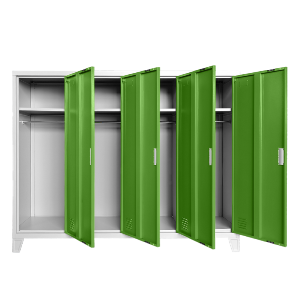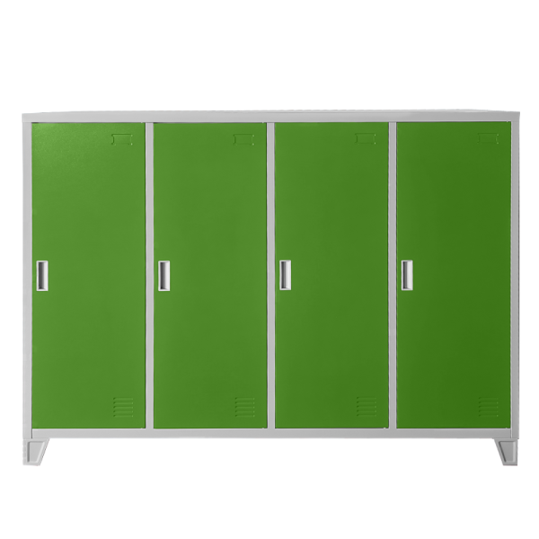 Метален шкаф Carmen CR-1605-4 JZ е четворен метален гардероб с четири плътни врати, които се затварят с помощта на магнитна система. Всяко отделение разполага с рафт с товароносимост до 40 кг, вграден лост за закачалки и вентилационен отвор за добра циркулация на въздуха. Моделът е снабден с крака с височина 10 см, които улесняват почистването под шкафа. Изработен е от праховобоядисан метал с грапаво-шагрен покритие. Подходящ е за оборудване на детски градини.