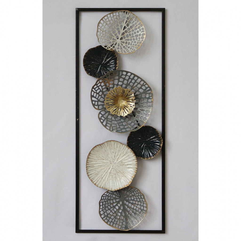 Метална стенна декорация в черно и бяло със златни и сребърни детайли. Придайте на пространството си модерния характер, който желаете, като изберете стилна стенна декорация. Прекрасно декоративно предложение, характеризиращо се с благородство и елегантност. Цвят: Черно, Бяло, Сребристо, Златно. Размери: 28.5x4x74.5Y см. Продуктът се доставя във фабрична опаковка.