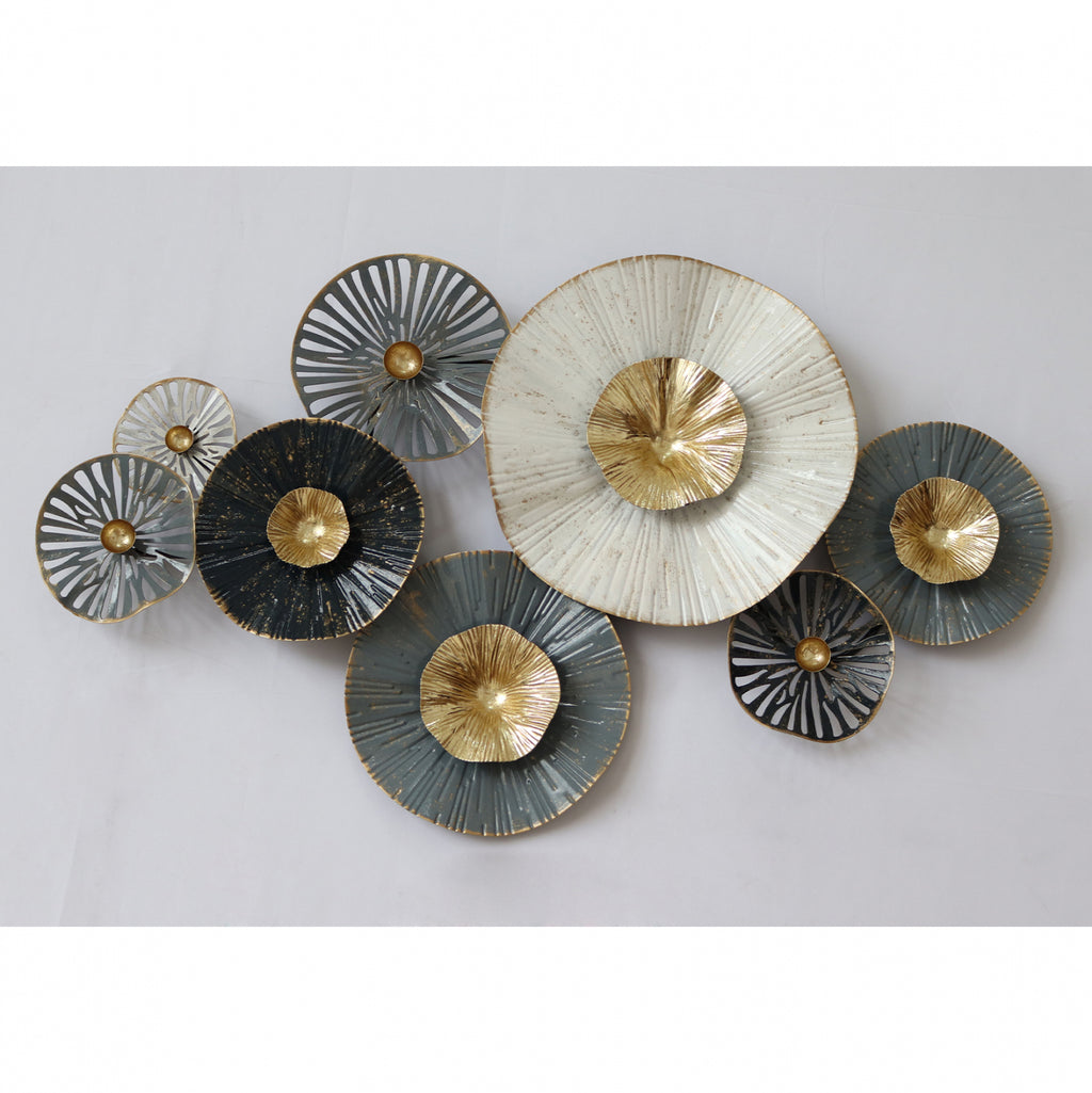 Метална стенна декорация в сиво и екрю със златни и антрацитни детайли. Придайте на пространството си модерния характер, който желаете, като изберете стилна стенна декорация. Прекрасно декоративно предложение, характеризиращо се с благородство и елегантност. Нюанс: Екрю, Антрацит, Сив, Златен. Размери: 88x7x51Y см. Продуктът се доставя във фабрична опаковка.