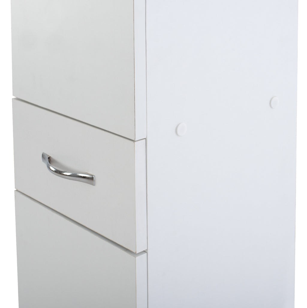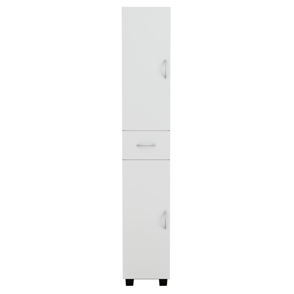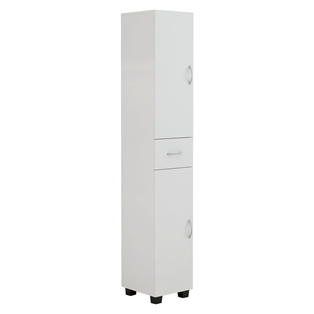 Дизайнът му включва две шкафчета с врати и рафтове, както и практично чекмедже в средата, което позволява удобно съхранение на хавлии, козметика и принадлежности за баня. Разпределението е функционално и осигурява отлична организация на пространството, като всичко необходимо е под ръка.