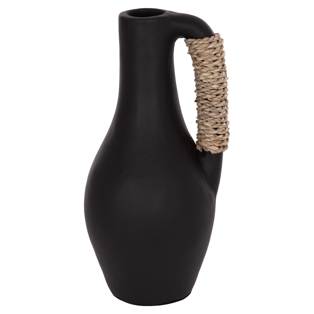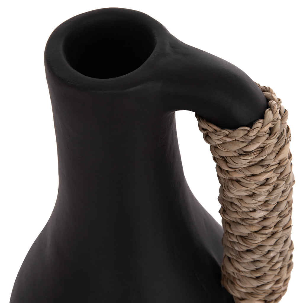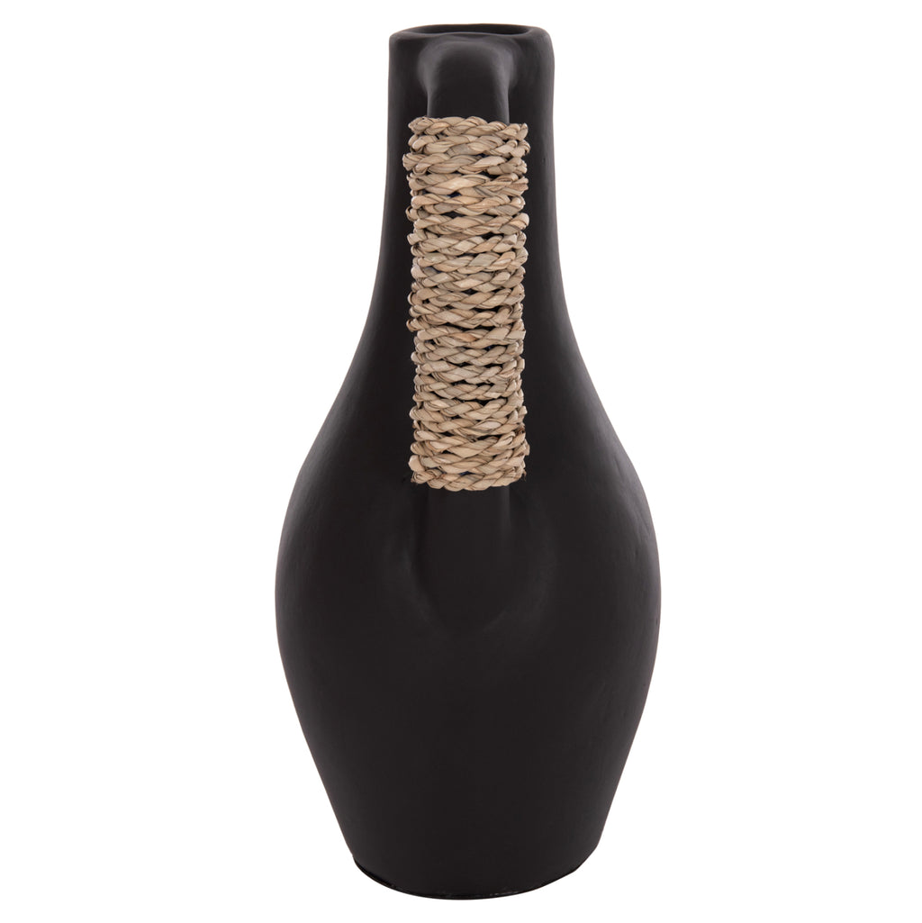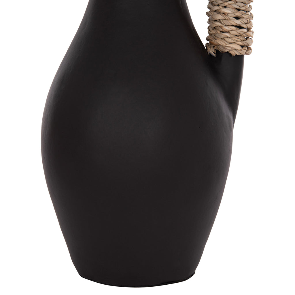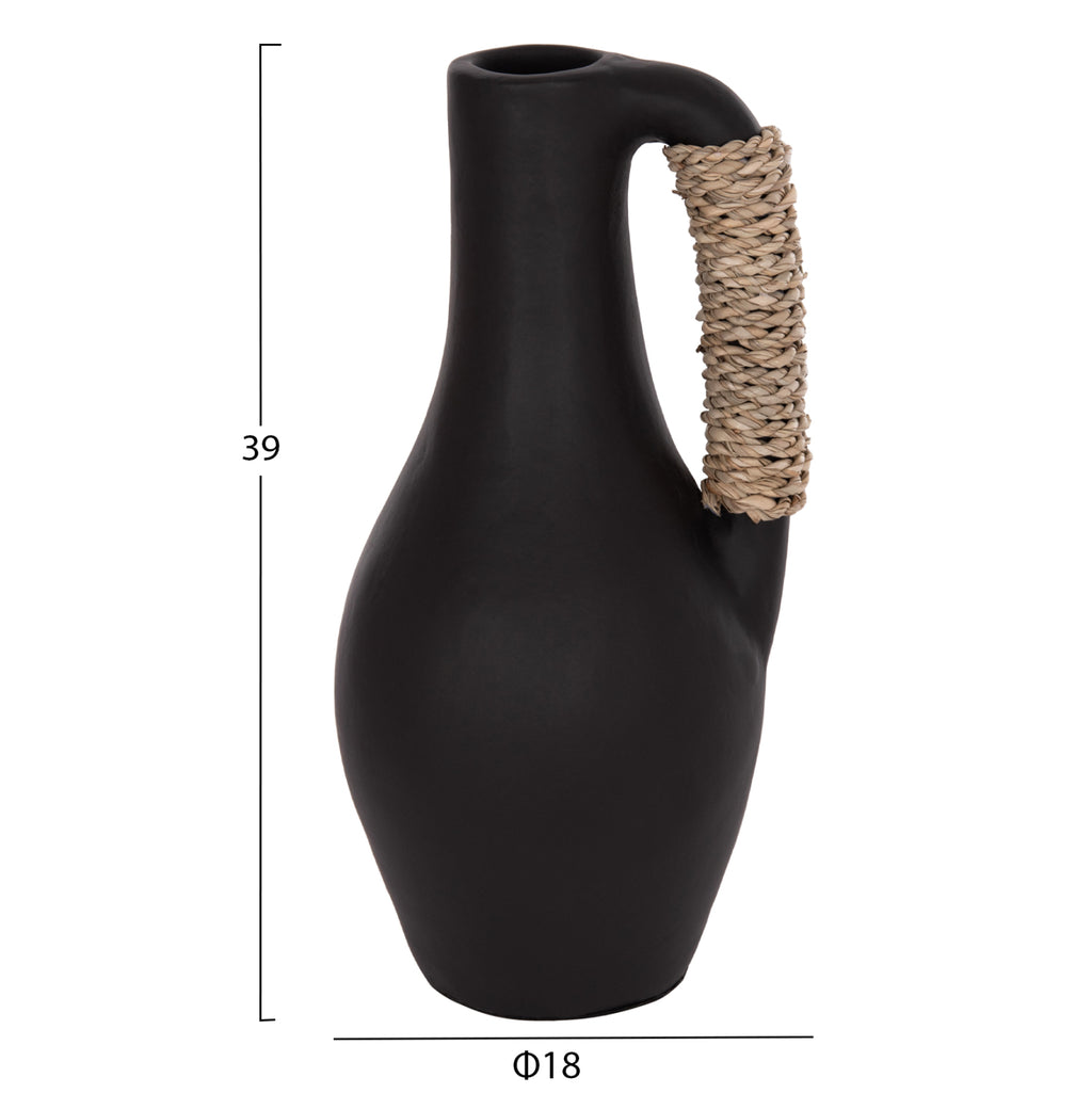 Настолната ръчно изработена декоративна ваза CAMMER е изработена изцяло от теракота в ЧЕРЕН цвят и има декоративна ратанова плетка на дръжката. Идеален за различни пространства, както за дома, така и за професионални пространства. РАЗМЕРИ: Φ18x39H см. Устие: Φ4,5 см. СТРОИТЕЛНИ МАТЕРИАЛИ: Строителният материал е теракот. Теракотата е керамичен материал. Името му идва от латински и означава "видима почва" (terra = почва, пръст и cotta = видима, изпечена). Затова, когато казваме, че нещо е направено от теракот, имаме предвид, че е направено от глина. ПОДДРЪЖКА: Едно почистване с прах обикновено е достатъчно, но избягвайте използването на химически почистващи препарати. ** Цветопредаването на продукта може леко да се различава от неговото фотографско представяне на вашия екран.