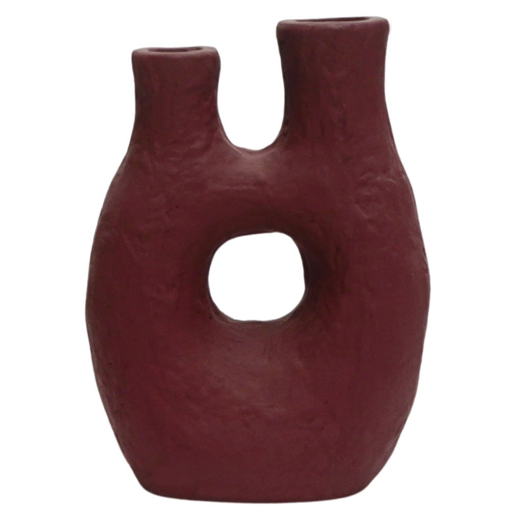 Ръчно изработената настолна декоративна ваза NAMENTIS с два чучура е много специален декоративен елемент за всяко пространство. Изработена е изцяло от теракота със сива текстура в цвят CURRICULUM, следващ съвременната тенденция в интериорната декорация. Идеален за множество приложения и пространства. РАЗМЕРИ: 26x15x32.5H см. СТРОИТЕЛНИ МАТЕРИАЛИ: Строителният материал е теракот. Теракотата е керамичен материал. Името му идва от латински и означава "видима почва" (terra = почва, пръст и cotta = видима, изпечена). Затова, когато казваме, че нещо е направено от теракот, имаме предвид, че е направено от глина. ПОДДРЪЖКА: Едно почистване с прах обикновено е достатъчно, но избягвайте използването на химически почистващи препарати. ** Цветопредаването на продукта може леко да се различава от неговото фотографско представяне на вашия екран.