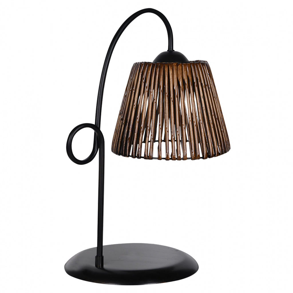Настолна лампа, в черен абажур с бамбукова шапка в орехов нюанс. Лампа с изключително качество, с подчертан дизайн, оригинален и елегантен стил, за обновяване на декорацията на вашето лично пространство. Изработена от метална рамка, изключително издръжлива и бамбукова шапка. Приема крушка E27, Max 60Watt, която не е включена в пакета. Размери: 12х42см. Европейско производство и произход. Продуктът се предлага във фабрична опаковка.