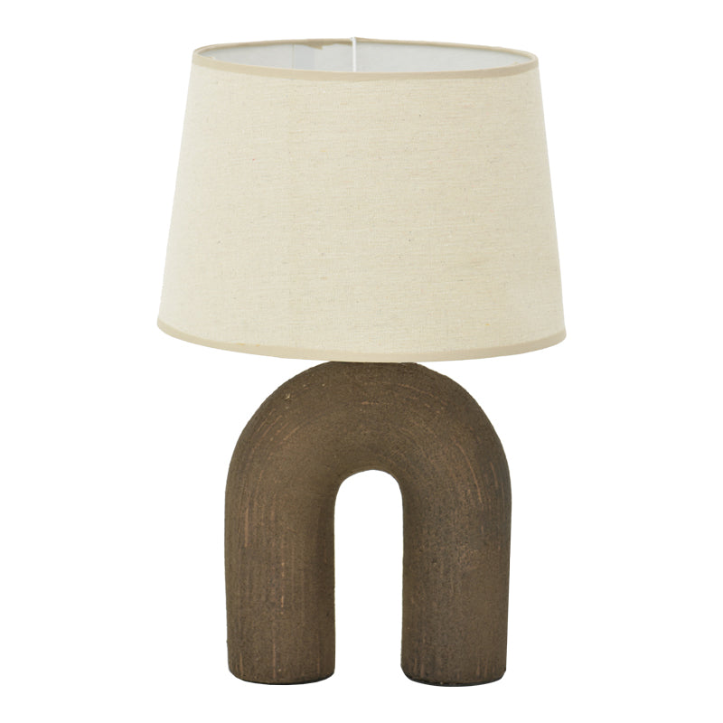 Настолна лампа archo e27 керамична в сив антично-бежов абажур d30x45см