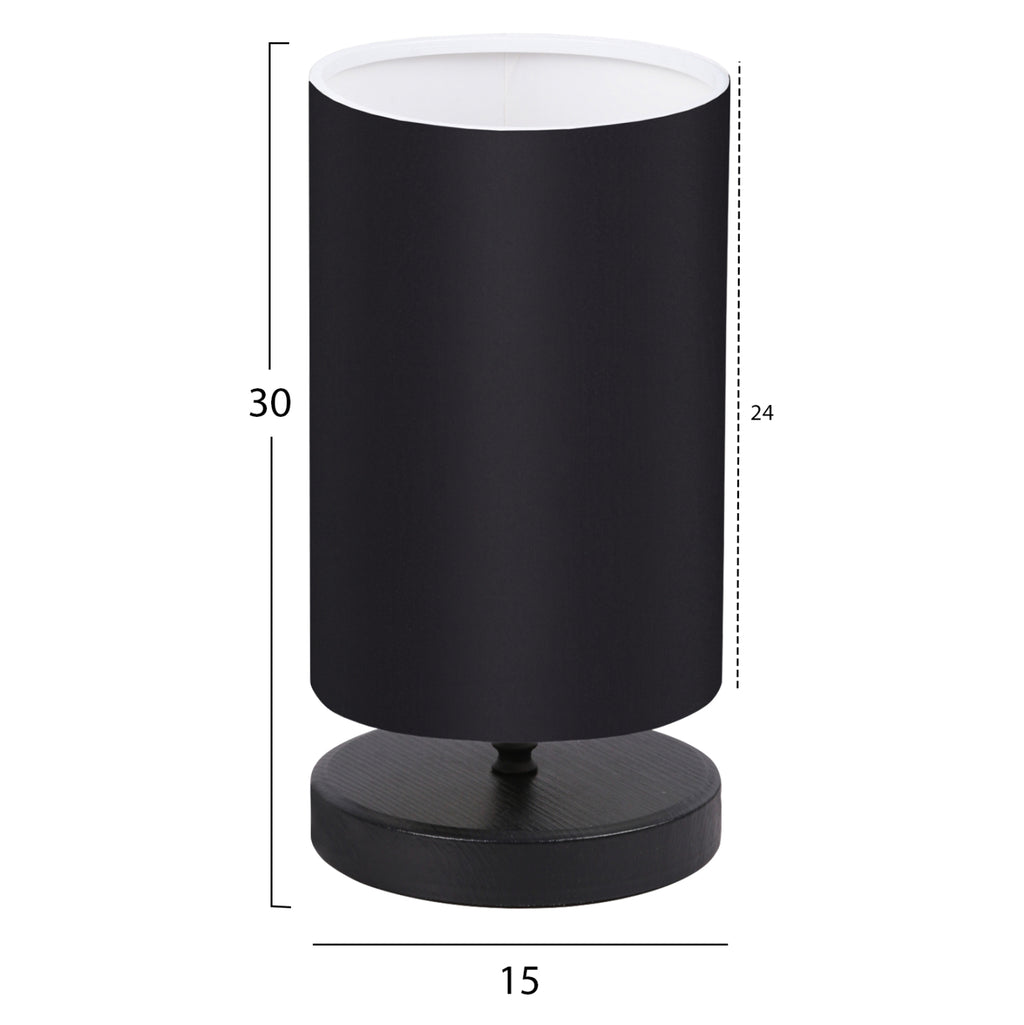 Декоративна настолна лампа с кръгла основа в черно и цилиндрична "шапка" също в черно. Светлината на лампата се разпръсква сладко в стаята и създава топла атмосфера. Тези видове лампи не са предназначени за лампи за четене и това винаги трябва да се има предвид при избора им. Те са чисто декоративни и съвпадението им с околното пространство трябва да е хармонично. Тази лампа е семпла, елегантна и удобна по размер, предоставяща безброй възможности за "връзване" с останалата част от вашия декор. Това е едно малко произведение на изкуството. ТЕХНИЧЕСКИ ХАРАКТЕРИСТИКИ: Цокъл за крушка: E14 Цокъл за обикновена крушка Тип крушка: LED- Максимална 20w Височина на колектора: 24см. Диаметър на шапката: 15см. Обща височина: 30 см. Дължина на кабела: 150 см. Има CE сертификат. МАТЕРИАЛ НА ИЗРАБОТКА: Основата на лампата е изработена от полиетилен. Стълбът вътре в "шапката" е метален. "Шапката" е изработена от плат за издръжливост и лесно почистване. ПОДДРЪЖКА: Лесно почистване може да се извърши с обикновена кърпа за прах за ежедневно почистване. Но за най-добър резултат избършете с влажна кърпа и вашата лампа ще изглежда като нова. ПРЕДИМСТВА: Лампата може да се използва в кафенета, ресторанти, хотели и дори у дома! Тя е "много талантлива" и красива. Благодарение на простия си дизайн, той лесно се комбинира с околното пространство, независимо дали е лека класическа декорация или по-модерна. Той ще добави сладост към атмосферата с финото си и релаксиращо осветление, което прави много трудно да устоите на неговата компания!