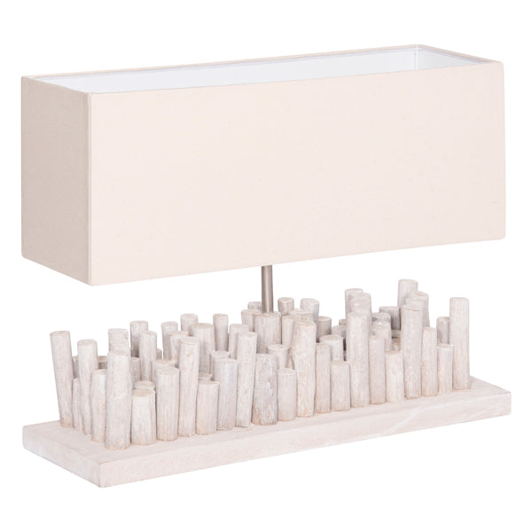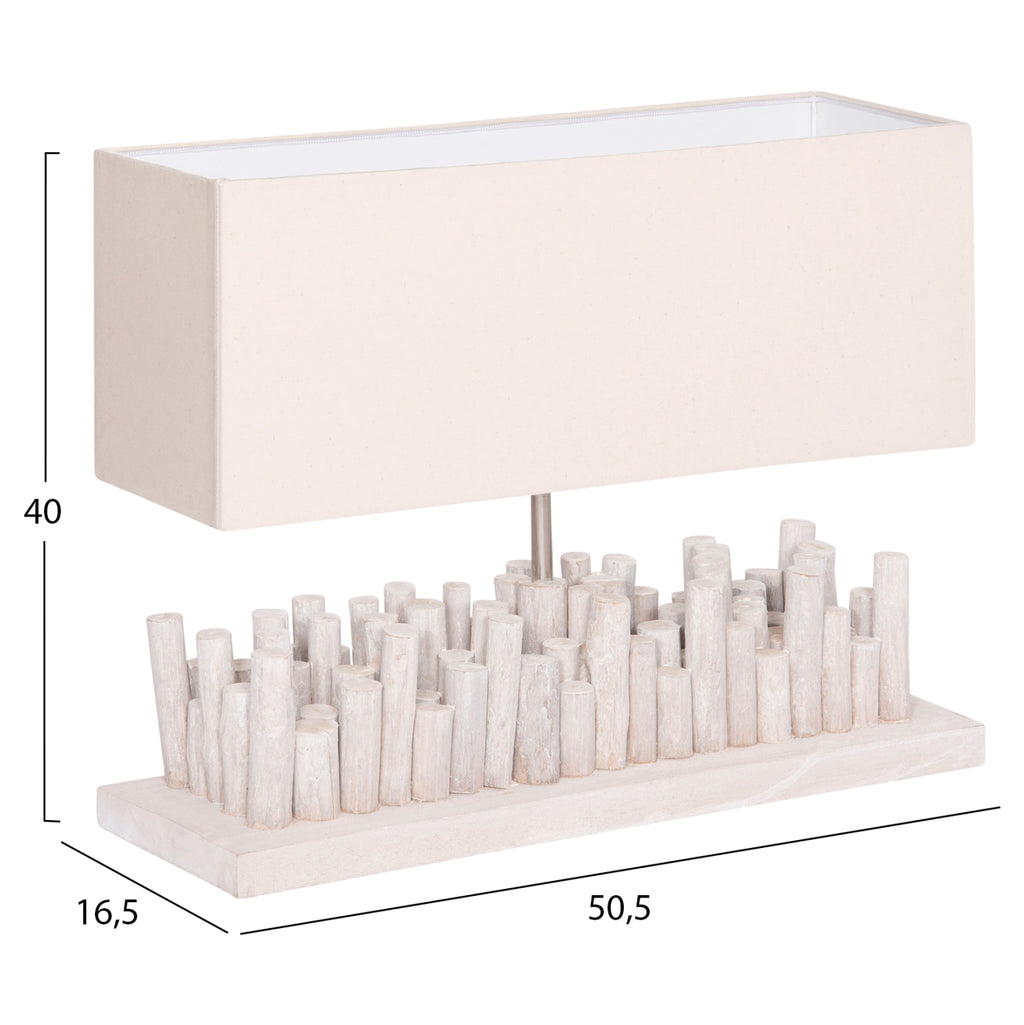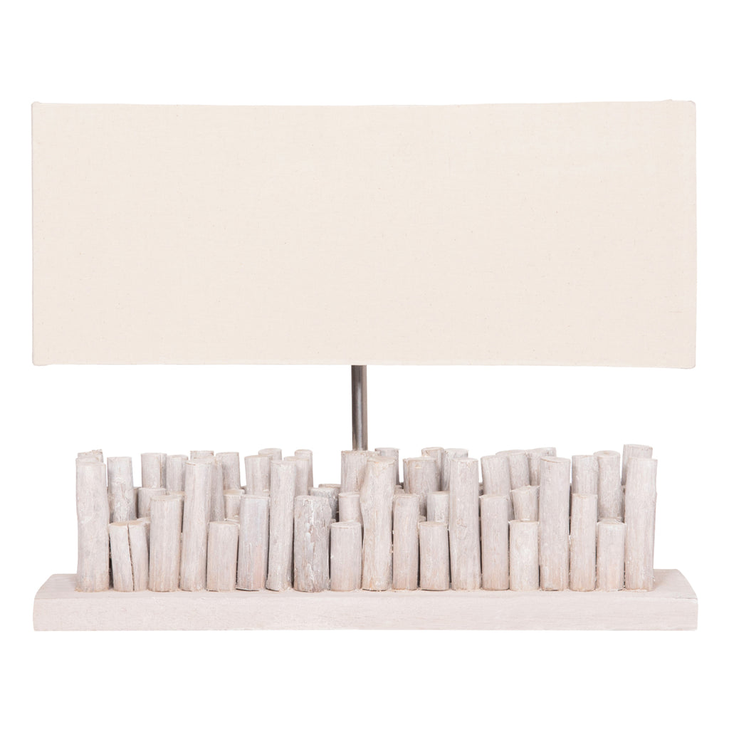 Осветете и в същото време украсете желаното от вас пространство със специалната настолна лампа TWIGGY в правоъгълен дизайн. Основата се състои от парчета дървесина в БЯЛ цвят, които рамкират металната греда, която поддържа БЯЛАТА шапка, която е изработена от памучен плат с PVC покритие. Лампата може да се използва в кафенета, ресторанти, хотели и дори у дома, придавайки усещане за лукс и рустикална интимност. ТЕХНИЧЕСКИ ХАРАКТЕРИСТИКИ: Цокъл за крушка: E27 Цокъл за обикновена крушка Тип на крушката: LED Размери: 50.5x16.5x40H cm. Шапка: 50х16х20Н см. Основа: 50.5x16.5x13H см. Има CE сертификат. **Размерите може да варират поради ръчно изработена конструкция. Всички пукнатини в дървото се дължат на естественото състояние на дървото и не са дефект на продукта. МАТЕРИАЛИ НА ИЗРАБОТКАТА: Основата е изработена от дървесина. Това са парчета дърво, изхвърлени на брега или плажа на море, езеро или река от действието на ветрове, приливи или вълни. Тези части се събират и обработват, за да се използват за различни цели. ПОДДРЪЖКА: Лесно почистване може да се извърши с обикновена кърпа за прах за ежедневно почистване. *Продуктът се доставя несглобен ** Цветопредаването на продукта може леко да се различава от фотографското представяне на вашия екран.