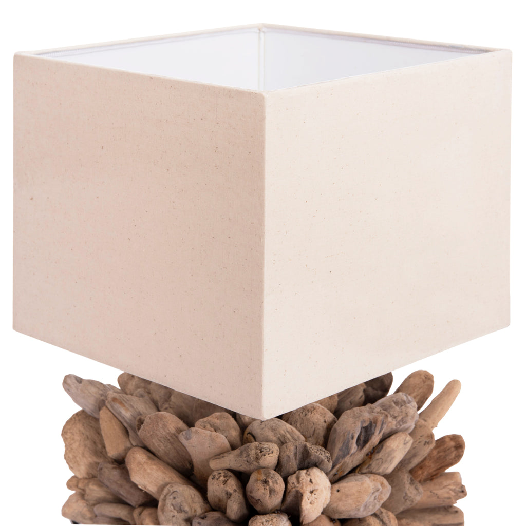 Осветете и в същото време украсете желаното от вас пространство със специалната настолна лампа TWIGGY в квадратен дизайн (форма на куб). Колоната се състои от парчета дървесина в НАТУРАЛЕН цвят, покриваща металната щанга, която поддържа БЯЛАТА шапка, която е изработена от памучен плат с PVC покритие. Лампата може да се използва в кафенета, ресторанти, хотели и дори у дома, придавайки усещане за лукс и рустикална интимност. ТЕХНИЧЕСКИ ХАРАКТЕРИСТИКИ: Цокъл за крушка: E27 Цокъл за обикновена крушка Тип на крушката: LED Размери: 24x24x46H cm. Шапка: 24х24х20Н см. Основа: 24x24x22H см. Има CE сертификат. **Размерите може да варират поради ръчно изработена конструкция. Всички пукнатини в дървото се дължат на естественото състояние на дървото и не са дефект на продукта. МАТЕРИАЛИ НА КОНСТРУКЦИЯТА: Стълбът е изработен от дървесина. Това са парчета дърво, изхвърлени на брега или плажа на море, езеро или река от действието на ветрове, приливи или вълни. Тези части се събират и обработват, за да се използват за различни цели. ПОДДРЪЖКА: Лесно почистване може да се извърши с обикновена кърпа за прах за ежедневно почистване. *Продуктът се доставя несглобен ** Цветопредаването на продукта може леко да се различава от фотографското представяне на вашия екран.