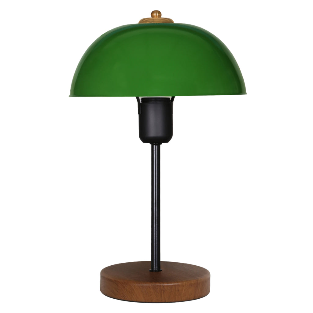 Декоративна настолна лампа с дървена кръгла основа в кафяв цвят и "шапка" във формата на гъба в зелен цвят. Колоната е метална в черно. Светлината се разсейва в пространството главно надолу, придавайки друго визуално измерение на пространството. Тези видове лампи не са предназначени за лампи за четене и това винаги трябва да се има предвид при избора им. Те са чисто декоративни и съвпадението им с околното пространство трябва да е хармонично. Тази лампа е семпла, елегантна и удобна по размер, предоставяща безброй възможности за "връзване" с останалата част от вашия декор. Това е едно малко произведение на изкуството. ТЕХНИЧЕСКИ ХАРАКТЕРИСТИКИ: Цокъл на крушка: E27 Цокъл с обикновена крушка Тип на крушката: LED- Максимална 15w Височина на цокъла: 12см. Диаметър на шапката: 23 см. Обща височина: 38 см. Дължина на кабела: 150 см. Има CE сертификат. КОНСТРУКТИВЕН МАТЕРИАЛ: Основата на лампата е изработена от MDF дърво, което я прави устойчива на време и употреба. Колоната е метална. "Шапката" е изработена от метал за издръжливост и лесно почистване. ПОДДРЪЖКА: Лесно почистване може да се извърши с обикновена кърпа за прах за ежедневно почистване. Но за най-добър резултат избършете дървената повърхност с влажна кърпа, както и металните повърхности и вашата лампа ще изглежда като нова. ПРЕДИМСТВА: Лампата може да се използва в кафенета, ресторанти, хотели и дори у дома! Тя е "много талантлива" и красива. Благодарение на простия си дизайн, той лесно се комбинира с околното пространство, независимо дали е лека класическа декорация или по-модерна. Той ще добави сладост към атмосферата с финото си и релаксиращо осветление, което прави много трудно да устоите на неговата компания!