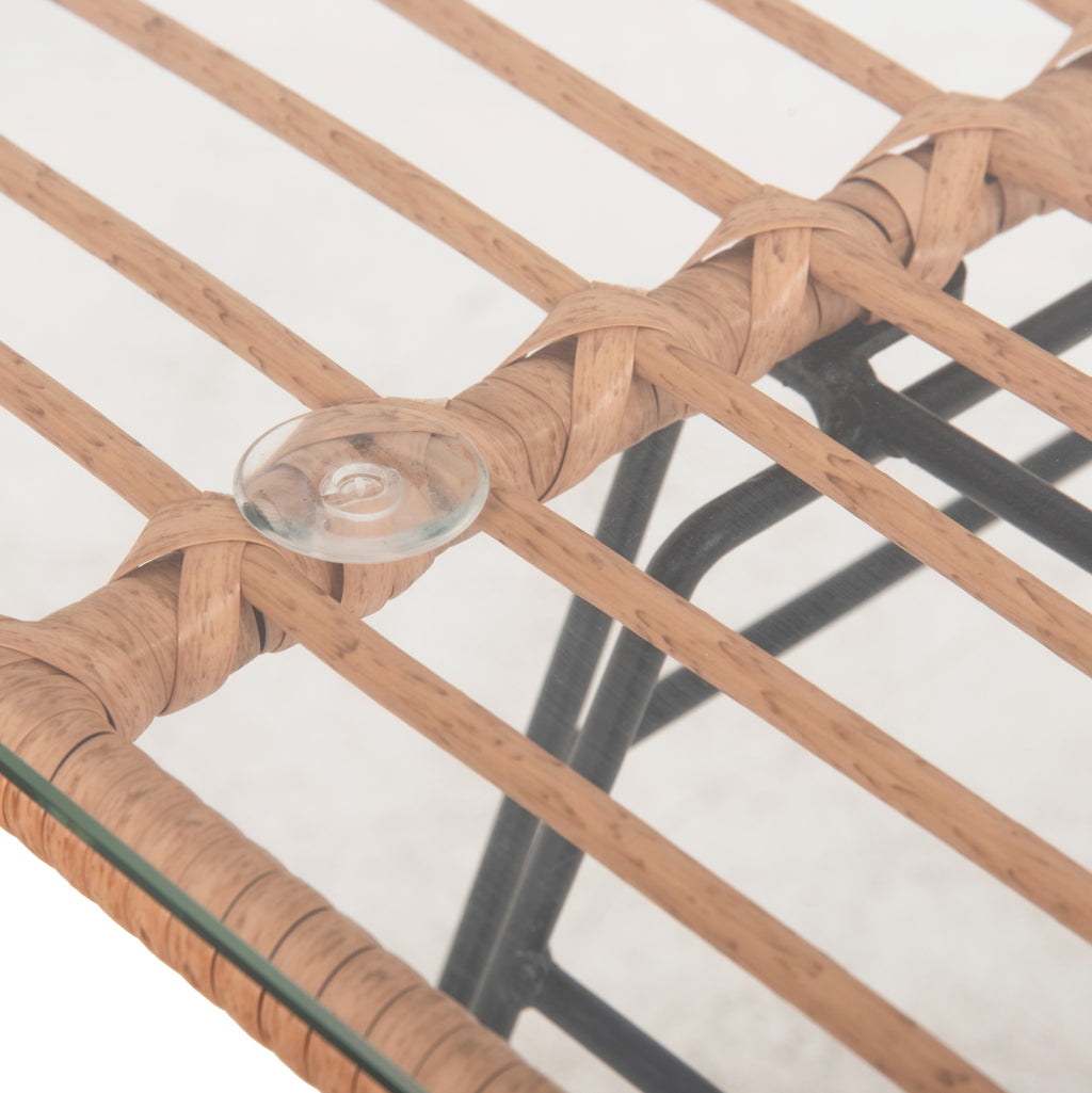 Правоъгълната (със заоблени ъгли) ниска външна маса от серия мебели АЛЛЕГРА е с ЧЕРНА метална конструкция с 4 крака. Горната част на рамката е покрита със синтетичен ратан в БЕЖОВ (натурален) цвят, за да се постави защитното стъкло на повърхността. Вече класически дизайн, който можете да съчетаете с много различни столове или кресла, със същата или различна философия. Размерите му го правят идеален за по-малки пространства, както професионални, така и домашни. РАЗМЕРИ: 95x55x51.5Y см. Разстояние между краката: 74х46 см. Дебелина на предпазното стъкло: 5мм КОНСТРУКТИВНИ МАТЕРИАЛИ: Рамката е метална с електростатично боядисване. Електростатичното боядисване е процес на сухо покритие, използван като метално покритие. Електростатичното боядисване е нанасяне на сух прах чрез електростатичен процес, който след това се „свързва“ към метала чрез топлина. Плотът е изработен от нечупливо стъкло или безопасно стъкло. Закаленото или "нечупливо" стъкло е вид безопасно стъкло около четири пъти по-здраво от обикновеното стъкло. И за разлика от обикновеното стъкло, което може да се пръсне на назъбени парчета, когато се счупи, закаленото стъкло се разбива на малки, относително безобидни гранулирани парчета. В резултат на това закаленото стъкло се използва в среди, където човешката безопасност е приоритет, като например жилищни приложения и т.н. Синтетичният ратан е изработен от висококачествени изкуствени влакна. Това придава на конструкцията изключителна здравина и издръжливост при екстремни горещини или студени условия. ПОДДРЪЖКА: От горното се вижда, че масата не се нуждае от специална поддръжка. Достатъчно е избърсване с влажна кърпа. *Масата се доставя разглобена във фабрична опаковка. **Точното цветопредаване на продукта може леко да се различава от действителния продукт поради различни настройки на монитора.