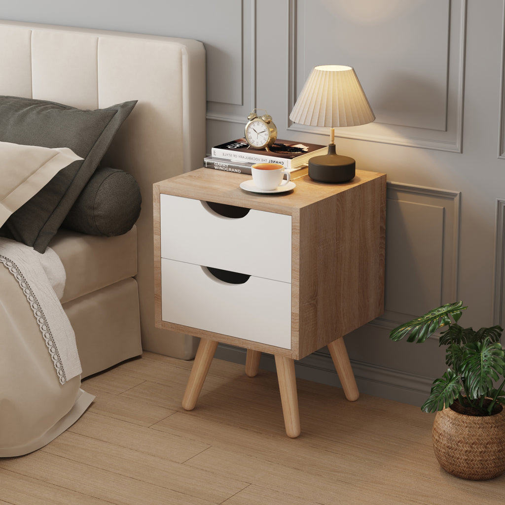 Нощното шкафче DINKL е практична и красива мебел, която ще съпътства и допълни по най-добрия начин оборудването на вашата спалня. Изработена е от качествен меламин в цвят БЯЛО и СОНАМА и разполага с 2 чекмеджета с вдлъбнати дръжки. Краката са високи и дървени, а размерите му го правят идеален дори за малки помещения, като е подходящ както за домашна, така и за професионална употреба. РАЗМЕРИ: 29.7x29.7x45Y см. Височина на крака: 17,5 см. МАТЕРИАЛИ НА ИЗРАБОТКА: Нощното шкафче е изцяло изработено от меламин. Меламинът е вид дървесина под формата на ПДЧ, много издръжлива и с голяма твърдост. Така че това е синтетичен материал с много твърда повърхност, което го прави много устойчив на драскотини, абразия и петна. Краката са изработени от масивна борова дървесина. ПОДДРЪЖКА: Меламинът, който е строителният материал, е особено издръжлив и се почиства много лесно от петна благодарение на твърдата си повърхност. Можете да избършете всички повърхности с влажна кърпа, а ако има упорити петна, можете да използвате мек почистващ препарат. *Нощното шкафче се доставя разглобено във фабрична опаковка ** Цветопредаването на продукта може леко да се различава от фотографското представяне на вашия екран.