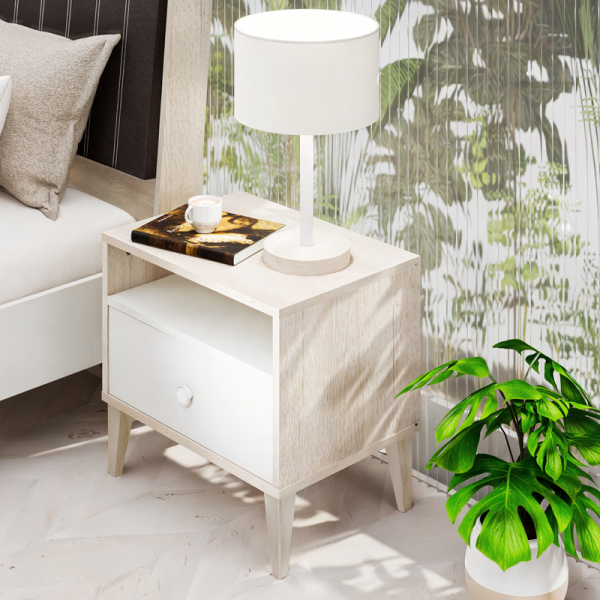 Нощното шкафче Ekvador впечатлява с изчистен и съвременен дизайн, който лесно се вписва във всяка спалня. Моделът е с дължина 56 см, дълбочина 40 см и височина 52 см. Стабилната конструкция и висококачествените материали гарантират дълготрайна употреба, а стилният вид добавя нотка елегантност към интериора.