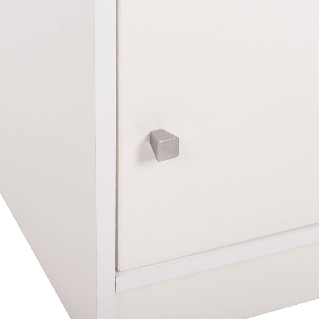 Нощното шкафче MALORY е практична и красива мебел, която ще съпътства и допълни по най-добрия начин оборудването на вашата спалня. Изработена е от качествен меламин в БЯЛ цвят и има жабка със сребриста дръжка и отворено пространство като рафт над жабката. Размерите му го правят идеален дори за малки помещения, като същевременно е подходящ както за домашна, така и за професионална употреба. РАЗМЕРИ: 40x40x50H см. Размери на рафта: 36x40x14H см. Размери на шкафа: 36x40x23H см. МАТЕРИАЛИ НА ИЗРАБОТКА: Нощното шкафче е изцяло изработено от меламин. Меламинът е вид дървесина под формата на ПДЧ, много издръжлива и с голяма твърдост. Така че това е синтетичен материал с много твърда повърхност, което го прави много устойчив на драскотини, абразия и петна. ПОДДРЪЖКА: Меламинът, който е строителният материал, е особено издръжлив и се почиства много лесно от петна благодарение на твърдата си повърхност. Можете да избършете всички повърхности с влажна кърпа, а ако има упорити петна, можете да използвате мек почистващ препарат. *Нощното шкафче се доставя разглобено във фабрична опаковка