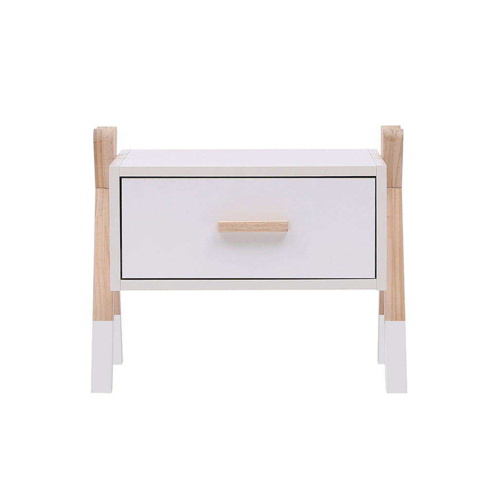 Представяме Ви новото детско (и не само) нощно шкафче PASCHAL в БЯЛ цвят. Той е с малки размери и има чекмедже за поставяне на предмети. Опира се на два дървени кръстосани крака в НАТУРАЛЕН дървесен цвят от двете страни. Красива и полезна мебел за всяко пространство. Боядисана е с безвреден лак на водна основа и нетоксичен, идеален за деца. РАЗМЕРИ: 46x30x38H см. МАТЕРИАЛ НА ИЗРАБОТКА: Нощното шкафче е изработено от меламин. Меламинът е вид дървесина под формата на ПДЧ. ПДЧ са продукти, които имат формата на плоча (панел). Така че това е синтетичен материал с много твърда повърхност, което го прави много устойчив на драскотини, абразия и петна. Краката са изработени от борова дървесина. Борът е мека, бяла или бледожълта дървесина, която е лека на тегло с прави влакна и е устойчива на свиване, подуване и огъване. ПОДДРЪЖКА: За лесно почистване използвайте влажна кърпа и избършете всички повърхности. Не използвайте силни избелващи средства. *Продуктът се доставя несглобен във фабрична опаковка **Точното цветопредаване на продукта може леко да се различава от действителния продукт поради различните настройки на всеки монитор.