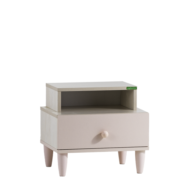 Нощното шкафче POLLINA е стилно и функционално допълнение към леглото в детската стая. Със своите компактни размери, изчистена форма и нежни цветове, то предлага удобно място за съхранение на книги, лампа или любими вещи. Моделът включва чекмедже с товароносимост до 25 кг и плавно затварящ се механизъм за безшумна употреба.