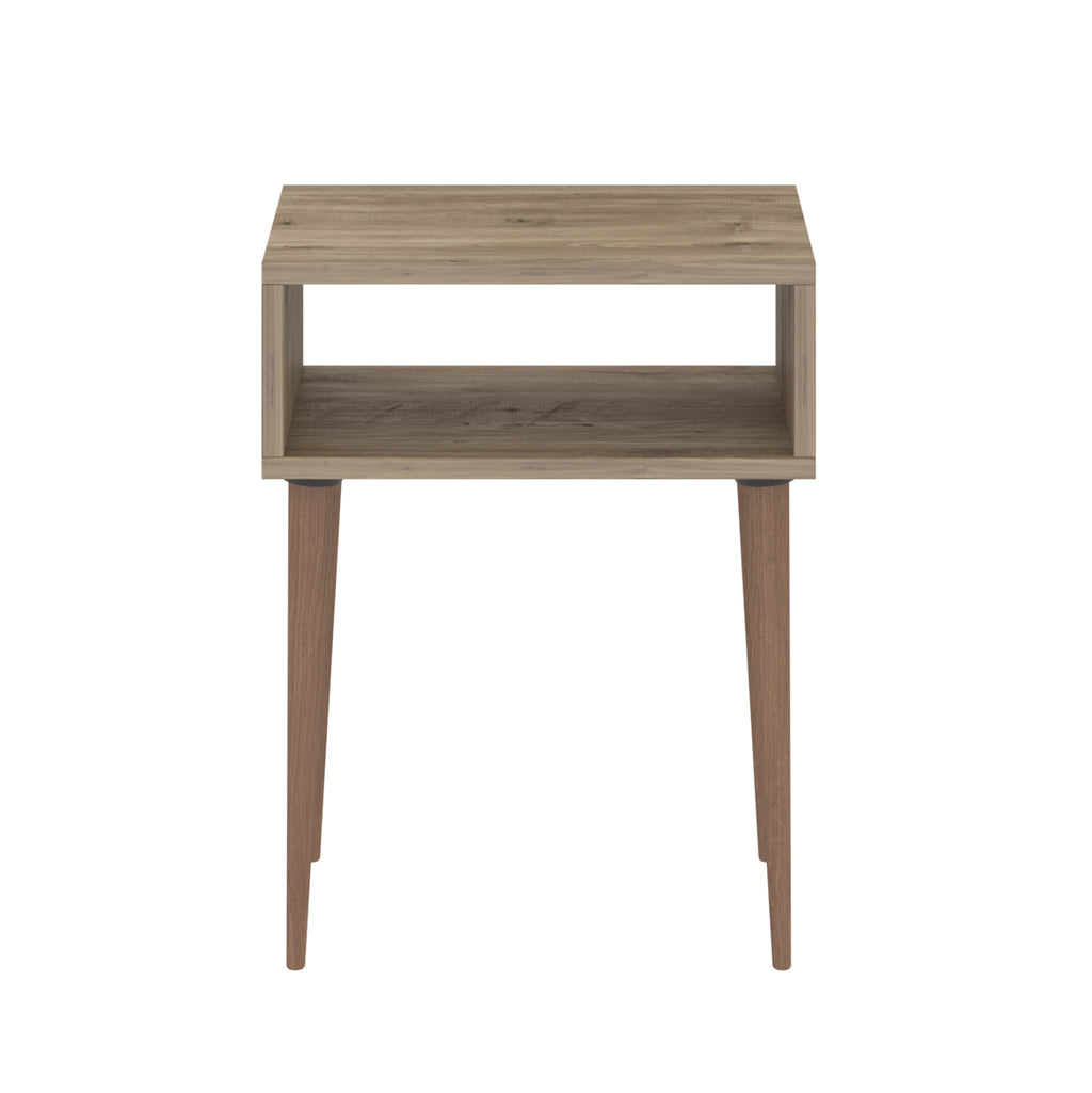 Нощното шкафче TODD е изработено от 18мм меламин в цвят НАТУРАЛЕН ДЪБ, а 4-те му крака са дървени в цвят НАТУРАЛНО дърво. Това е практична и удобна мебел, която благодарение на отворения си дизайн може да предложи решения по всяко време. РАЗМЕРИ: 45х30х58кв. МАТЕРИАЛИ ЗА ПРОИЗВОДСТВО: Меламинът е вид дървесина под формата на ПДЧ (плоч). Като материал е много издръжлив и с голяма твърдост. Така че това е синтетичен материал с много твърда повърхност, което го прави много устойчив на драскотини, абразия и петна. ПОДДРЪЖКА: Както повърхността, така и краката се почистват лесно с влажна кърпа. *Продуктът се доставя във фабрична опаковка ** Цветопредаването на продукта може леко да се различава от фотографското му представяне на вашия екран.