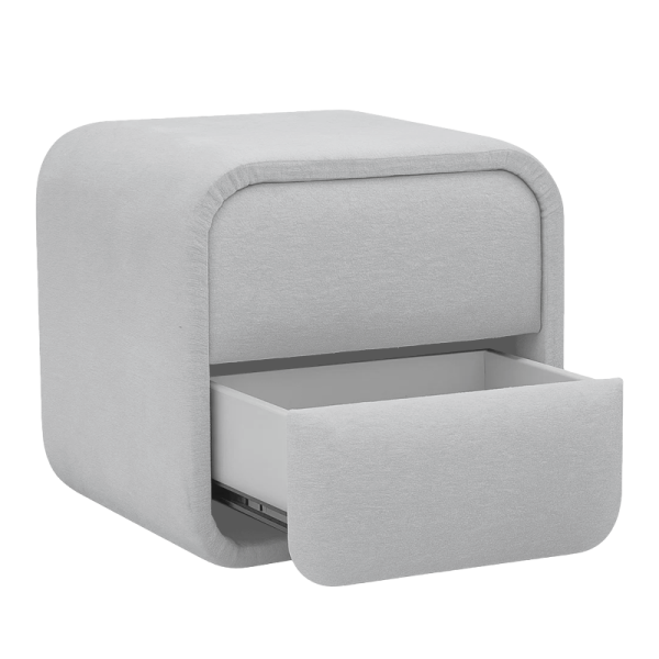 Нощното шкафче BUMBY е елегантен акцент към спалнята, изработено от висококачествено ПДЧ с тапицерия от дамаска. Разполага с две чекмеджета с механизми за плавно затваряне и е перфектното допълнение към леглото от серията.