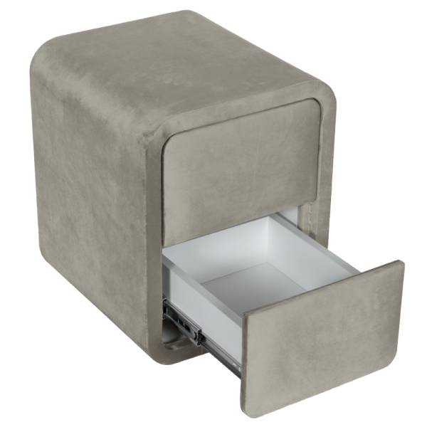 Нощно шкафче FALLONE е елегантно и практично допълнение към всяка спалня. Изработено от качествена дамаска и корпус от ПДЧ, моделът комбинира топли цветове с функционалност. Разполага с две плавно затварящи се чекмеджета, които осигуряват удобно съхранение на вещи в близък достъп до леглото. Минималистичните крачета гарантират стабилност и лесна поддръжка, а компактните размери го правят подходящо както за просторни, така и за по-малки помещения.